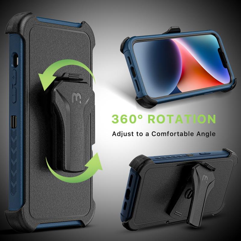 Gear up your customers' Apple iPhone 14 (6.1) with the Maverick Series Case from MyBat Pro, the ultimate rugged military-grade phone case built to withstand all treks, trails, and paths. It is available in attractive packaging that makes it stand out on the shelf and shows off the product beautifully, making it an ideal addition to your inventory.The Maverick Series iPhone 14 (6.1) Case provides the perfect barrier shielding for your customer’s iPhone 14 (6.1) with military-grade protection. The triple-layer construction of the case, including a rugged army green TPE backing shell, an anti-shock polycarbonate inner shell, and a polycarbonate exterior shell, provides the ultimate protection against drops, scratches, and cracks. They will experience the perfect in-hand feel with textured edges and a non-slip bumper grip for easy access to all buttons and ports. They can also attach the Maverick Series iPhone 14 (6.1) Case and go anywhere using the 360° rotating holster clip or set it down and use it as a kickstand for convenient hands-free viewing. Designed from anti-microbial materials, the Maverick Series iPhone 14 (6.1) Case can ward off any threat, even microscopic. Customers will also experience diamond-level coverage with the included high-grade tempered glass screen protector, boasting a 9H hardness keeping their iPhone 14 (6.1) screen safe and pristine!MyBat Pro offers an extended lifetime warranty for the Maverick Series Case For iPhone 14 (6.1), ensuring the best quality, performance, and customer satisfaction.Features:Triple-LayeredCertified Military GradeImpact & Shock Shock ProtectionRaised Bezel EdgesNon-Slip Bumper GripEasy Access: Ports & ButtonsAnti-Microbial360° Rotating Holster Clip & KickstandIncludes 9H HD Tempered GlassLifetime Warranty