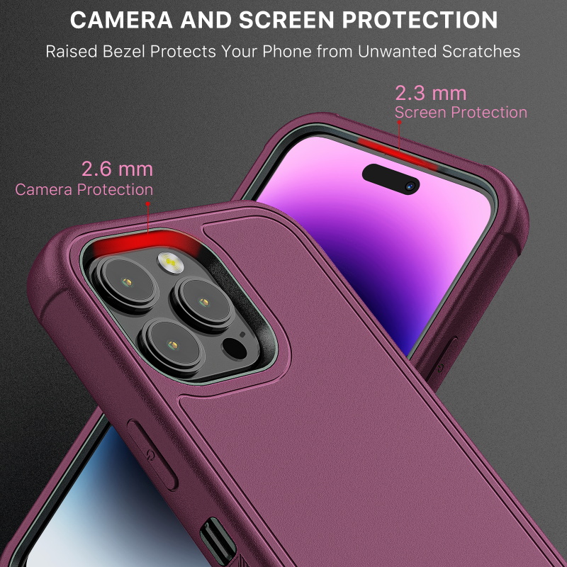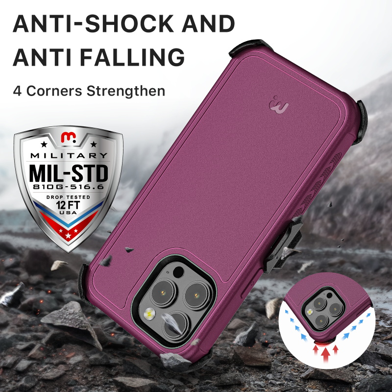 MyBat Pro Maverick Series Case w/ Holster and Tempered Glass for Apple iPhone 14 Pro (6.1) - Plum