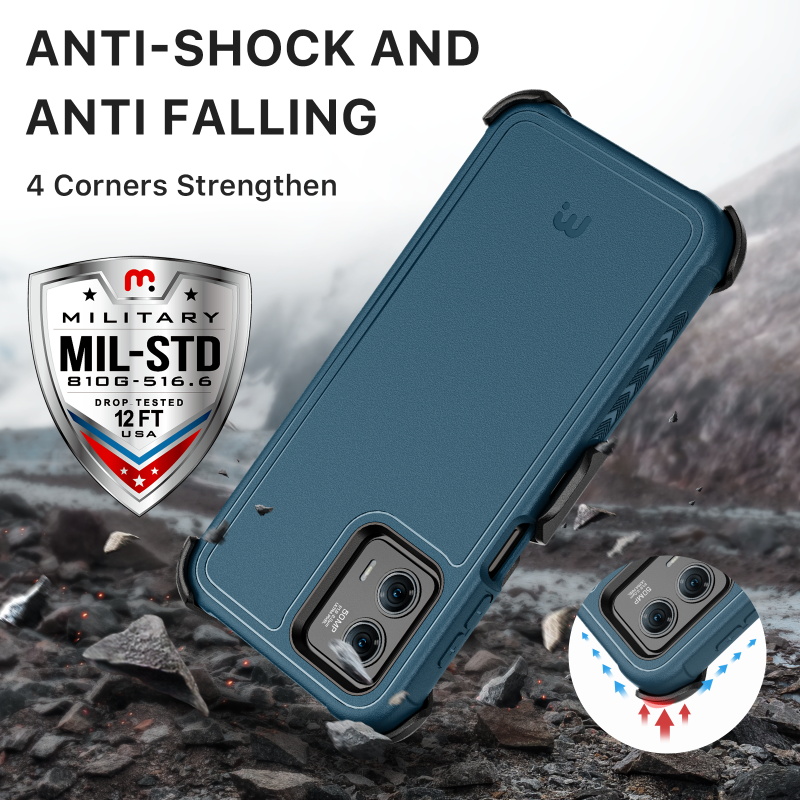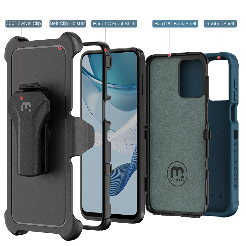 Gear up your customers' Motorola Moto G 5G (2023) with the Maverick Series Case from MyBat Pro, the ultimate rugged military-grade phone case built to withstand all treks, trails, and paths. It is available in attractive packaging that makes it stand out on the shelf and shows off the product beautifully, making it an ideal addition to your inventory.The Maverick Series Moto G 5G (2023) Case provides the perfect barrier shielding for your customer’s Moto G 5G (2023) with military-grade protection. The triple-layer construction of the case, including a rugged black TPE backing shell, an anti-shock polycarbonate inner shell, and a polycarbonate exterior shell, provides the ultimate protection against drops, scratches, and cracks. They will experience the perfect in-hand feel with textured edges and a non-slip bumper grip for easy access to all buttons and ports. They can also attach the Maverick Series Moto G 5G (2023) Case and go anywhere using the 360° rotating holster clip or set it down and use it as a kickstand for convenient hands-free viewing. Designed from anti-microbial materials, the Maverick Series Moto G 5G (2023) Case can ward off any threat, even microscopic. MyBat Pro offers an extended lifetime warranty for the Maverick Series Case For Moto G 5G (2023), ensuring the best quality, performance, and customer satisfaction.Features:Triple-LayeredCertified Military GradeImpact & Shock Shock ProtectionRaised Bezel EdgesNon-Slip Bumper GripEasy Access: Ports & ButtonsAnti-Microbial360° Rotating Holster Clip & KickstandLifetime Warranty