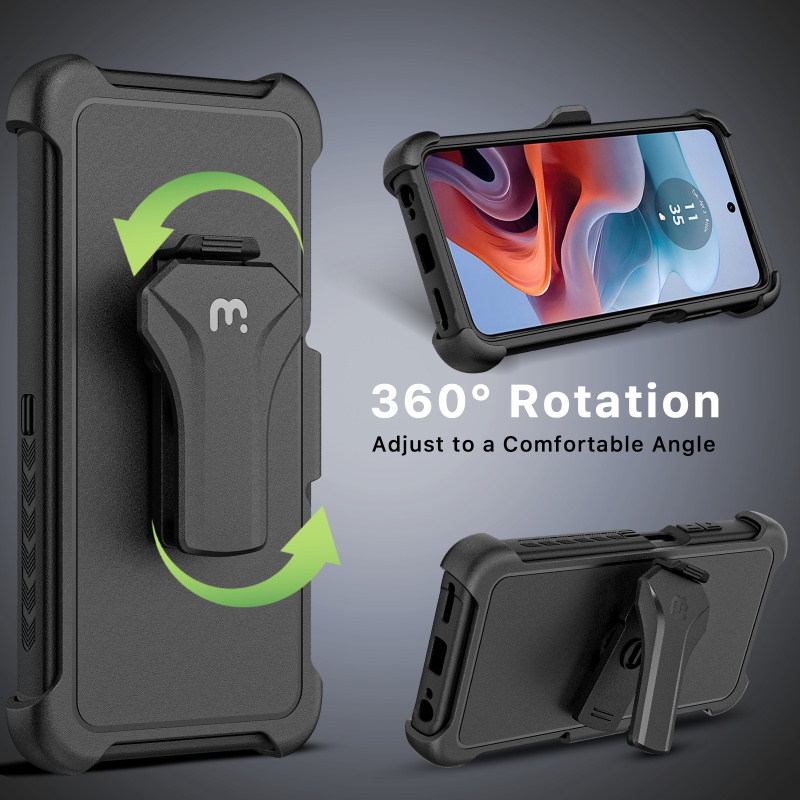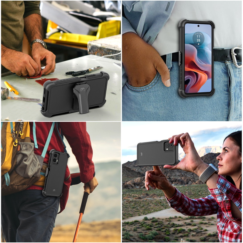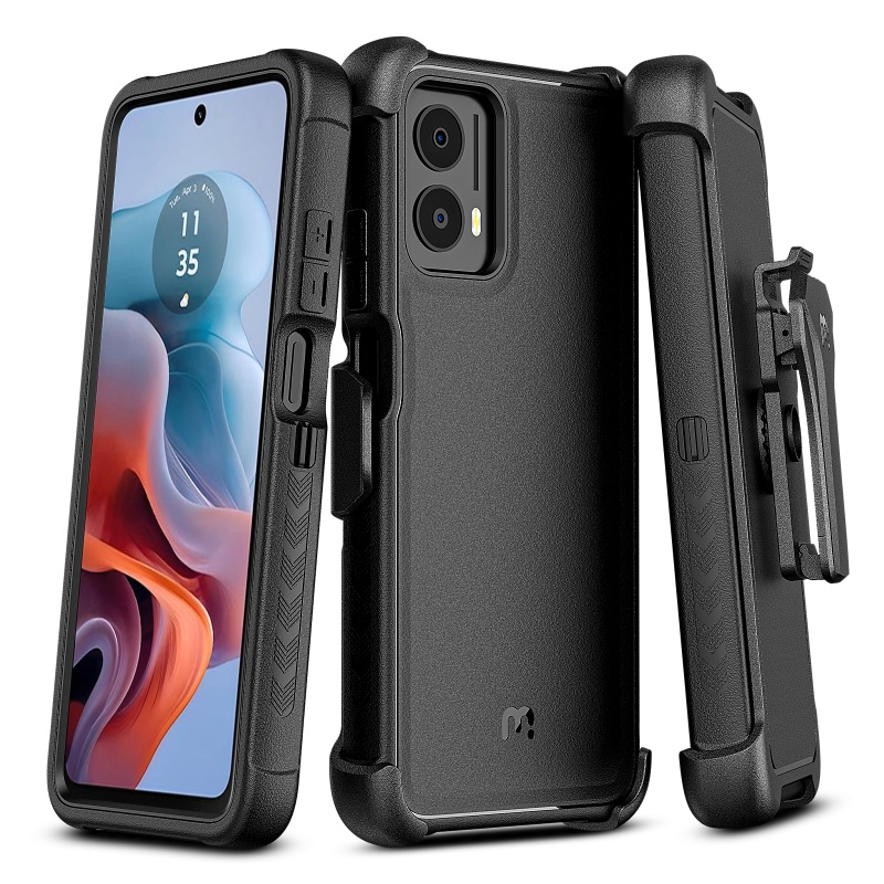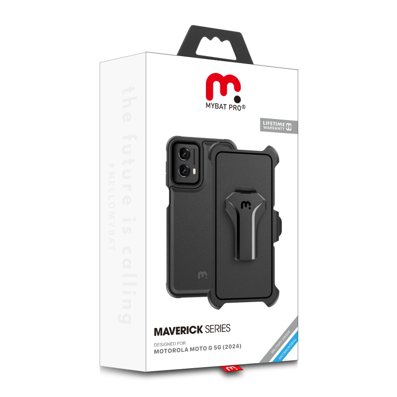 Gear up your customers' Motorola Moto G 5G (2024) with the Maverick Series Case from MyBat Pro, the ultimate rugged military-grade phone case built to withstand all treks, trails, and paths. It is available in attractive packaging that makes it stand out on the shelf and shows off the product beautifully, making it an ideal addition to your inventory. The Maverick Series Moto G 5G (2024) Case provides the perfect barrier shielding for your customer’s Moto G 5G (2024) with military-grade protection. The triple-layer construction of the case, including a rugged black TPE backing shell, an anti-shock polycarbonate inner shell, and a polycarbonate exterior shell, provides the ultimate protection against drops, scratches, and cracks. They will experience the perfect in-hand feel with textured edges and a non-slip bumper grip for easy access to all buttons and ports. They can also attach the Maverick Series Moto G 5G (2024) Case and go anywhere using the 360° rotating holster clip or set it down and use it as a kickstand for convenient hands-free viewing. Designed from anti-microbial materials, the Maverick Series Moto G 5G (2024) Case can ward off any threat, even microscopic. MyBat Pro offers an extended lifetime warranty for the Maverick Series Case For Moto G 5G (2024), ensuring the best quality, performance, and customer satisfaction. Features: Triple-Layered Certified Military Grade Impact & Shock Shock Protection Raised Bezel Edges Non-Slip Bumper Grip Easy Access: Ports & Buttons Anti-Microbial 360° Rotating Holster Clip & Kickstand Lifetime Warranty