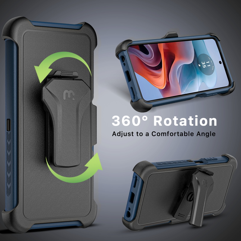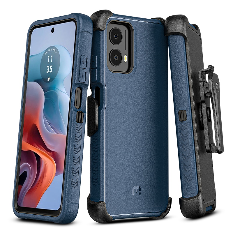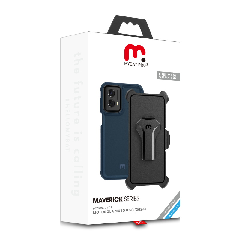Gear up your customers' Motorola Moto G 5G (2024) with the Maverick Series Case from MyBat Pro, the ultimate rugged military-grade phone case built to withstand all treks, trails, and paths. It is available in attractive packaging that makes it stand out on the shelf and shows off the product beautifully, making it an ideal addition to your inventory. The Maverick Series Moto G 5G (2024) Case provides the perfect barrier shielding for your customer’s Moto G 5G (2024) with military-grade protection. The triple-layer construction of the case, including a rugged black TPE backing shell, an anti-shock polycarbonate inner shell, and a polycarbonate exterior shell, provides the ultimate protection against drops, scratches, and cracks. They will experience the perfect in-hand feel with textured edges and a non-slip bumper grip for easy access to all buttons and ports. They can also attach the Maverick Series Moto G 5G (2024) Case and go anywhere using the 360° rotating holster clip or set it down and use it as a kickstand for convenient hands-free viewing. Designed from anti-microbial materials, the Maverick Series Moto G 5G (2024) Case can ward off any threat, even microscopic. MyBat Pro offers an extended lifetime warranty for the Maverick Series Case For Moto G 5G (2024), ensuring the best quality, performance, and customer satisfaction. Features: Triple-Layered Certified Military Grade Impact & Shock Shock Protection Raised Bezel Edges Non-Slip Bumper Grip Easy Access: Ports & Buttons Anti-Microbial 360° Rotating Holster Clip & Kickstand Lifetime Warranty