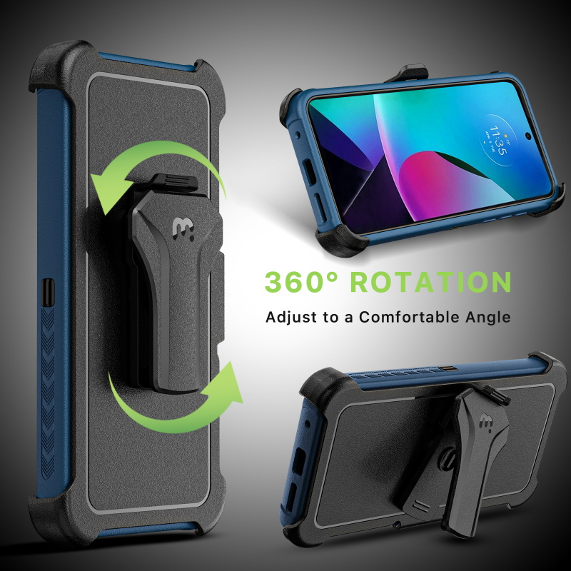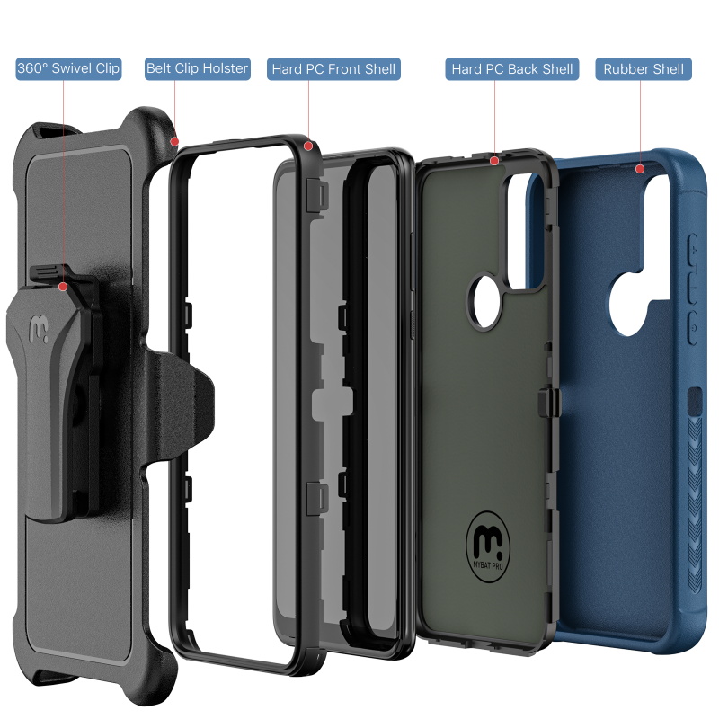 Gear up your customers' Motorola Moto G Play (2023) with the Maverick Series Case from MyBat Pro, the ultimate rugged military-grade phone case built to withstand all treks, trails, and paths. It is available in attractive packaging that makes it stand out on the shelf and shows off the product beautifully, making it an ideal addition to your inventory.The Maverick Series Moto G Play (2023) Case provides the perfect barrier shielding for your customer’s Moto G Play (2023) with military-grade protection. The triple-layer construction of the case, including a rugged black TPE backing shell, an anti-shock polycarbonate inner shell, and a polycarbonate exterior shell, provides the ultimate protection against drops, scratches, and cracks. They will experience the perfect in-hand feel with textured edges and a non-slip bumper grip for easy access to all buttons and ports. They can also attach the Maverick Series Moto G Play (2023) Case and go anywhere using the 360° rotating holster clip or set it down and use it as a kickstand for convenient hands-free viewing. Designed from anti-microbial materials, the Maverick Series Moto G Play (2023) Case can ward off any threat, even microscopic. MyBat Pro offers an extended lifetime warranty for the Maverick Series Case For Moto G Play (2023), ensuring the best quality, performance, and customer satisfaction.Features:Triple-LayeredCertified Military GradeImpact & Shock Shock ProtectionRaised Bezel EdgesNon-Slip Bumper GripEasy Access: Ports & ButtonsAnti-Microbial360° Rotating Holster Clip & KickstandLifetime Warranty