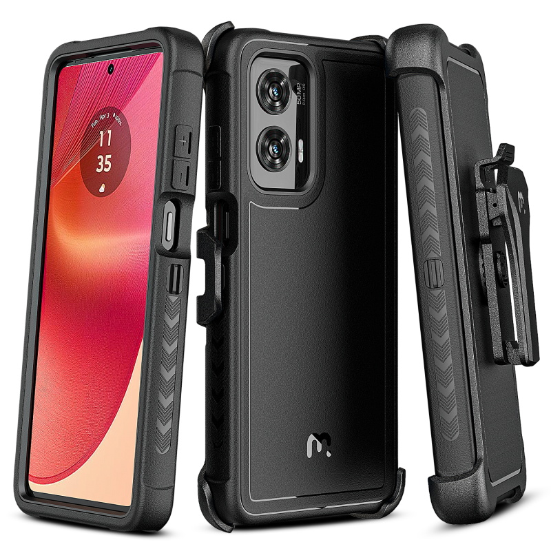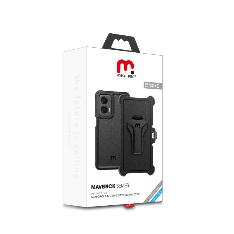 Gear up your customers' Motorola Moto G Stylus 5G (2024) with the Maverick Series Case from MyBat Pro, the ultimate rugged military-grade phone case built to withstand all treks, trails, and paths. It is available in attractive packaging that makes it stand out on the shelf and shows off the product beautifully, making it an ideal addition to your inventory.The Maverick Series Moto G Stylus 5G (2024) Case provides the perfect barrier shielding for your customer’s Moto G Stylus 5G (2024) with military-grade protection. The triple-layer construction of the case, including a rugged black TPE backing shell, an anti-shock polycarbonate inner shell, and a polycarbonate exterior shell, provides the ultimate protection against drops, scratches, and cracks. They will experience the perfect in-hand feel with textured edges and a non-slip bumper grip for easy access to all buttons and ports. They can also attach the Maverick Series Moto G Stylus 5G (2024) Case and go anywhere using the 360° rotating holster clip or set it down and use it as a kickstand for convenient hands-free viewing. Designed from anti-microbial materials, the Maverick Series Moto G Stylus 5G (2024) Case can ward off any threat, even microscopic. MyBat Pro offers an extended lifetime warranty for the Maverick Series Case For Moto G Stylus 5G (2024), ensuring the best quality, performance, and customer satisfaction.Features:Triple-LayeredCertified Military GradeImpact & Shock Shock ProtectionRaised Bezel EdgesNon-Slip Bumper GripEasy Access: Ports & ButtonsAnti-Microbial360° Rotating Holster Clip & KickstandLifetime Warranty