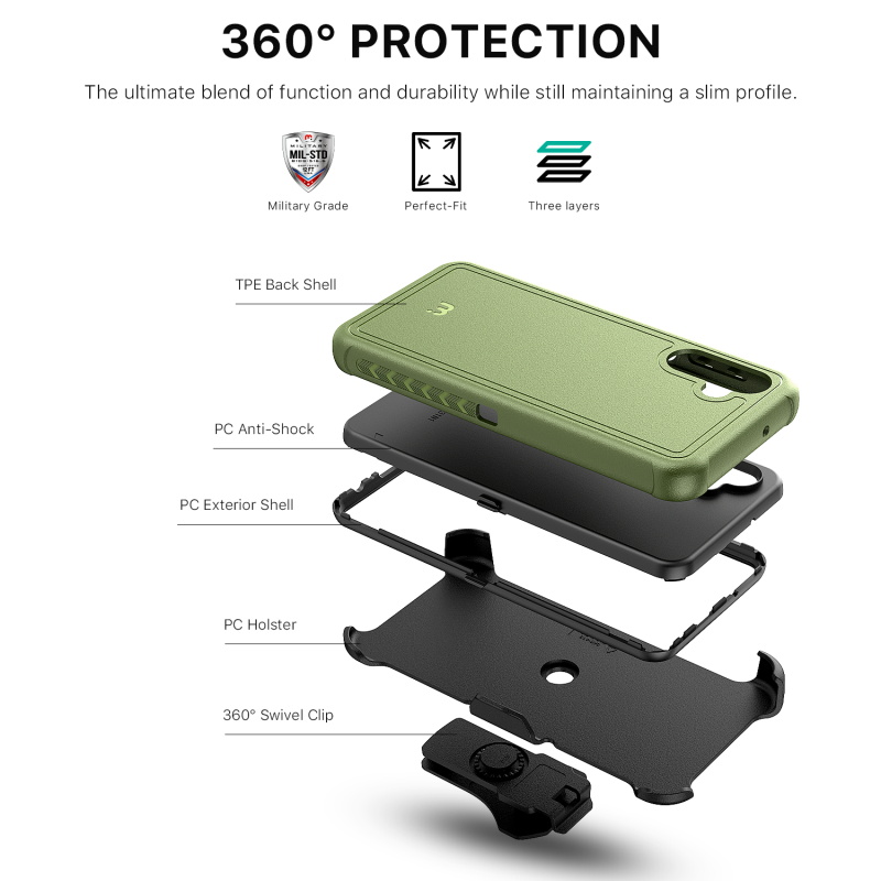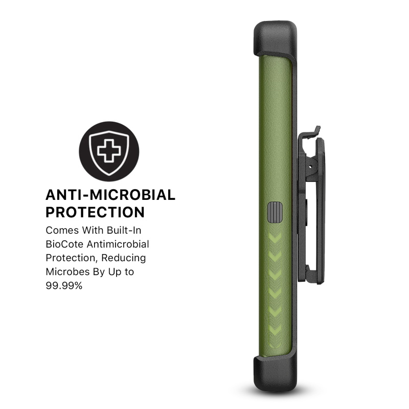 Gear up your customers' Samsung Galaxy A13 5G with the Maverick Series Case from MyBat Pro, the ultimate rugged military-grade phone case built to withstand all treks, trails, and paths. It is available in attractive packaging that makes it stand out on the shelf and shows off the product beautifully, making it an ideal addition to your inventory. The Maverick Series Galaxy A13 5G Case provides the perfect barrier shielding for your customer’s Galaxy A13 5G with military-grade protection. The triple-layer construction of the case, including a rugged black TPE backing shell, an anti-shock polycarbonate inner shell, and a polycarbonate exterior shell, provides the ultimate protection against drops, scratches, and cracks. They will experience the perfect in-hand feel with textured edges and a non-slip bumper grip for easy access to all buttons and ports. They can also attach the Maverick Series Galaxy A13 5G Case and go anywhere using the 360° rotating holster clip or set it down and use it as a kickstand for convenient hands-free viewing. Designed from anti-microbial materials, the Maverick Series Galaxy A13 5G Case can ward off any threat, even microscopic. MyBat Pro offers an extended lifetime warranty for the Maverick Series Case For Galaxy A13 5G, ensuring the best quality, performance, and customer satisfaction. Features: Triple-Layered Certified Military Grade Impact & Shock Shock Protection Raised Bezel Edges Non-Slip Bumper Grip Easy Access: Ports & Buttons Anti-Microbial 360° Rotating Holster Clip & Kickstand Lifetime Warranty