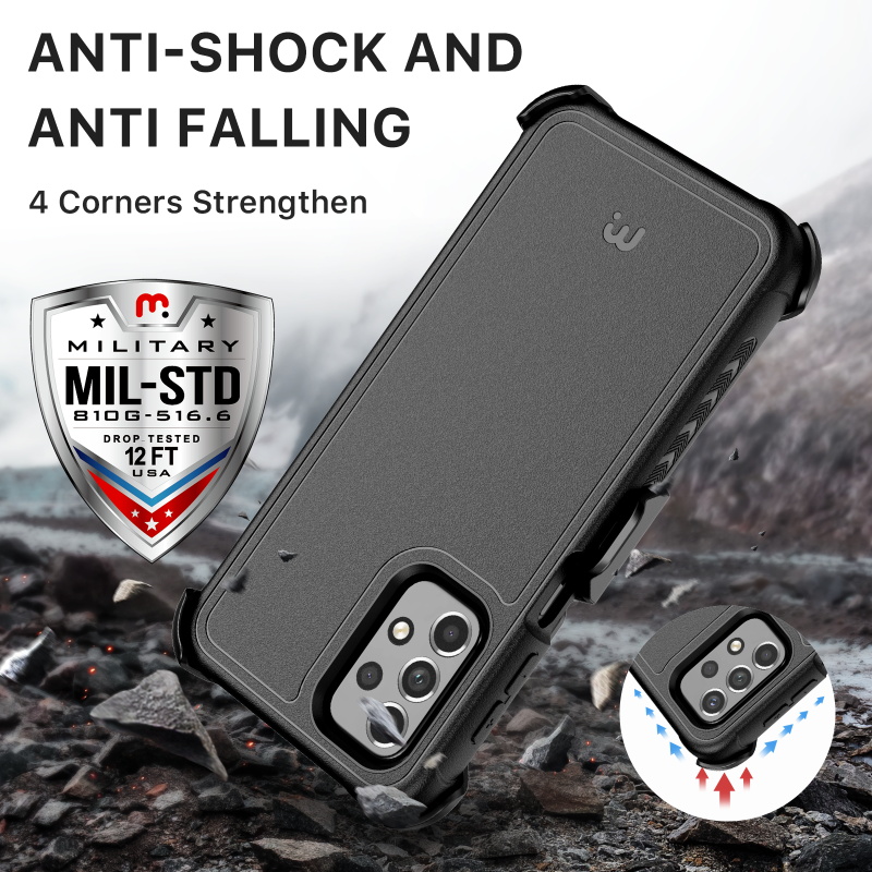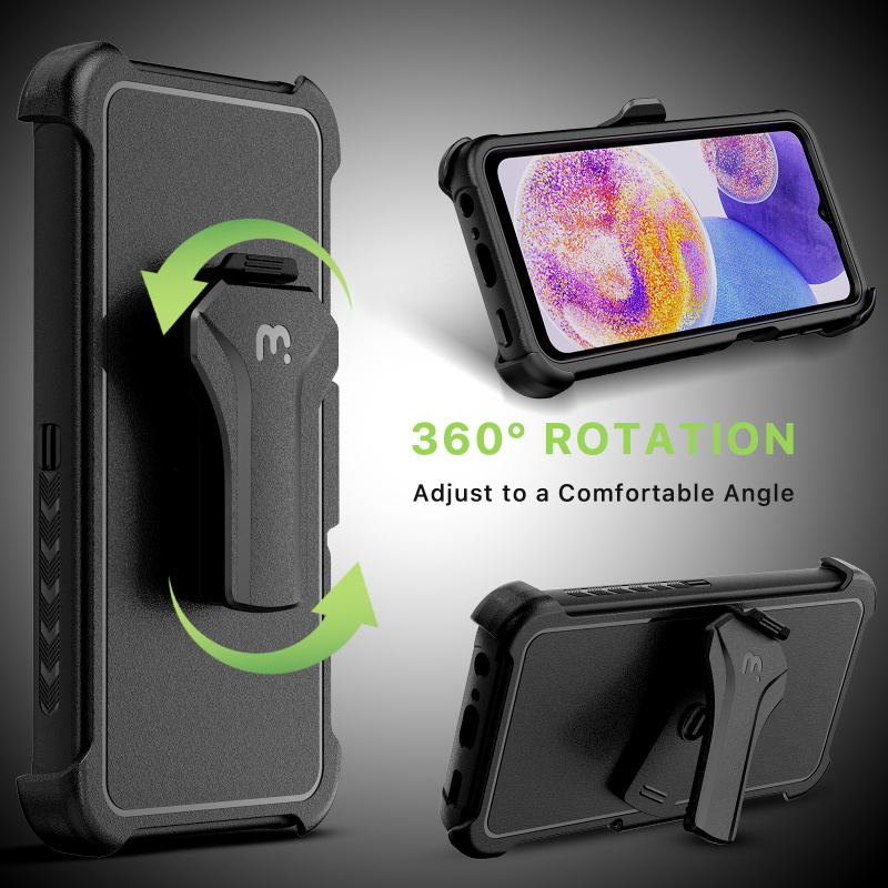 Gear up your customers' Samsung Galaxy A23 5G with the Maverick Series Case from MyBat Pro, the ultimate rugged military-grade phone case built to withstand all treks, trails, and paths. It is available in attractive packaging that makes it stand out on the shelf and shows off the product beautifully, making it an ideal addition to your inventory. The Maverick Series Galaxy A23 5G Case provides the perfect barrier shielding for your customer’s Galaxy A23 5G with military-grade protection. The triple-layer construction of the case, including a rugged black TPE backing shell, an anti-shock polycarbonate inner shell, and a polycarbonate exterior shell, provides the ultimate protection against drops, scratches, and cracks. They will experience the perfect in-hand feel with textured edges and a non-slip bumper grip for easy access to all buttons and ports. They can also attach the Maverick Series Galaxy A23 5G Case and go anywhere using the 360° rotating holster clip or set it down and use it as a kickstand for convenient hands-free viewing. Designed from anti-microbial materials, the Maverick Series Galaxy A23 5G Case can ward off any threat, even microscopic. MyBat Pro offers an extended lifetime warranty for the Maverick Series Case For Galaxy A23 5G, ensuring the best quality, performance, and customer satisfaction. Features: Triple-Layered Certified Military Grade Impact & Shock Shock Protection Raised Bezel Edges Non-Slip Bumper Grip Easy Access: Ports & Buttons Anti-Microbial 360° Rotating Holster Clip & Kickstand Lifetime Warranty