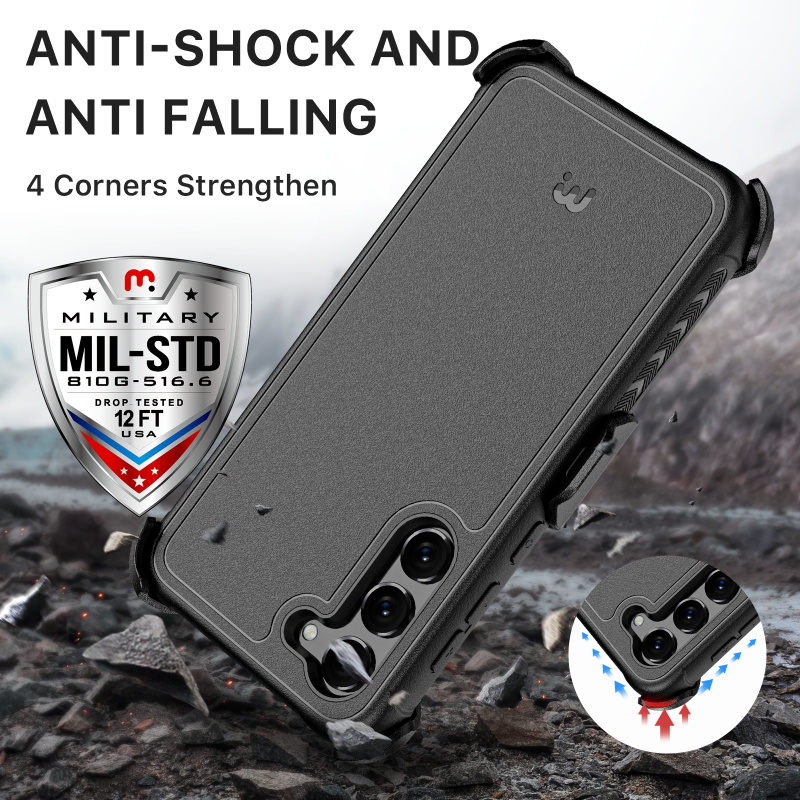 Gear up your customers' Samsung Galaxy S23 Plus with the Maverick Series Case from MyBat Pro, the ultimate rugged military-grade phone case built to withstand all treks, trails, and paths. It is available in attractive packaging that makes it stand out on the shelf and shows off the product beautifully, making it an ideal addition to your inventory.The Maverick Series Galaxy S23 Plus Case provides the perfect barrier shielding for your customer’s Galaxy S23 Plus with military-grade protection. The triple-layer construction of the case, including a rugged black TPE backing shell, an anti-shock polycarbonate inner shell, and a polycarbonate exterior shell, provides the ultimate protection against drops, scratches, and cracks. They will experience the perfect in-hand feel with textured edges and a non-slip bumper grip for easy access to all buttons and ports. They can also attach the Maverick Series Galaxy S23 Plus Case and go anywhere using the 360° rotating holster clip or set it down and use it as a kickstand for convenient hands-free viewing. Designed from anti-microbial materials, the Maverick Series Galaxy S23 Plus Case can ward off any threat, even microscopic. MyBat Pro offers an extended lifetime warranty for the Maverick Series Case For Galaxy S23 Plus, ensuring the best quality, performance, and customer satisfaction.Features:Triple-LayeredCertified Military GradeImpact & Shock Shock ProtectionRaised Bezel EdgesNon-Slip Bumper GripEasy Access: Ports & ButtonsAnti-Microbial360° Rotating Holster Clip & KickstandLifetime Warranty