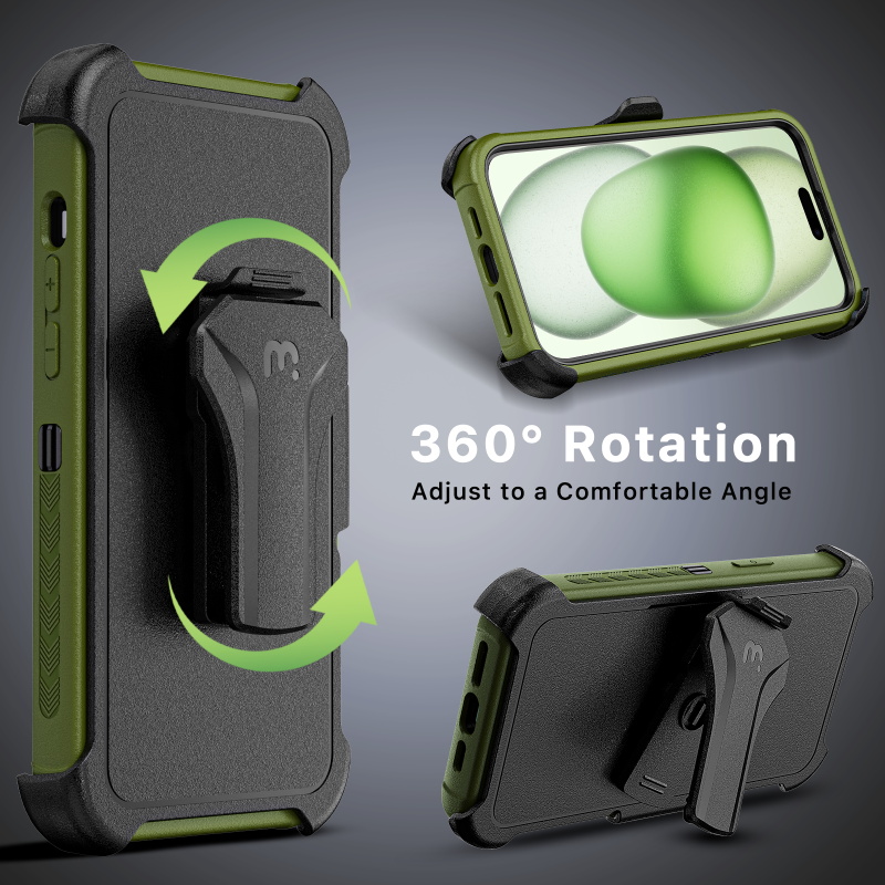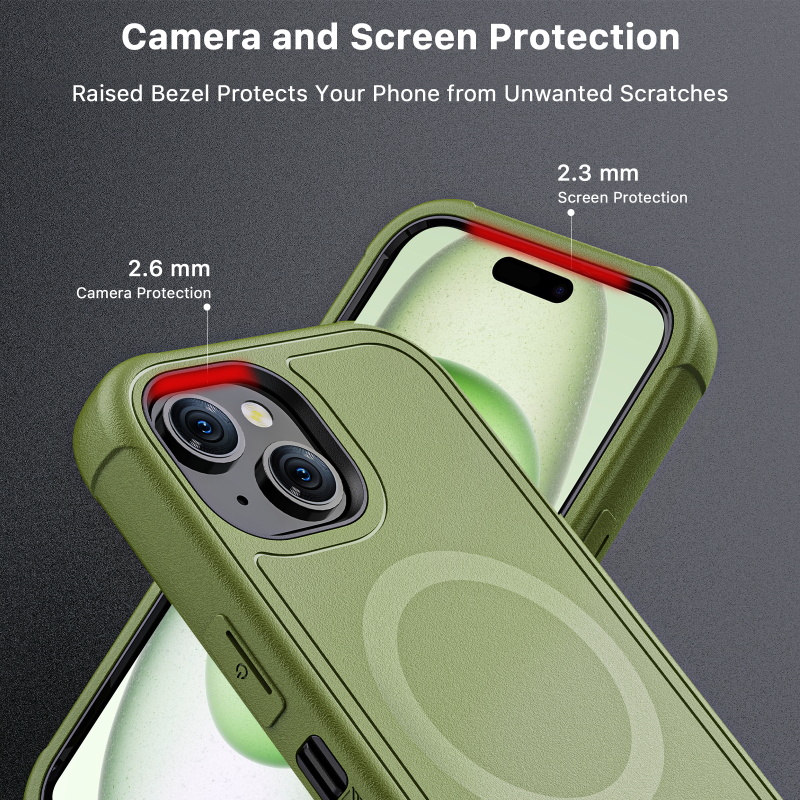 MyBat Pro Maverick Series MagSafe Case w/ Holster and Tempered Glass for Apple iPhone 15 Plus (6.7) - Army Green