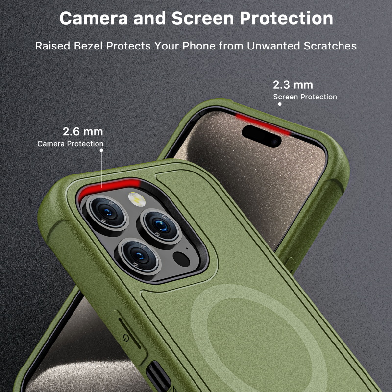 MyBat Pro Maverick Series MagSafe Case w/ Holster and Tempered Glass for Apple iPhone 15 Pro Max (6.7) - Army Green
