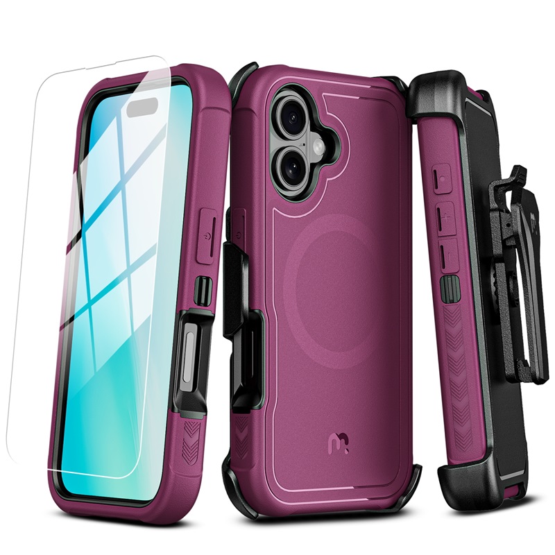 MyBat Pro Maverick Series MagSafe Case w/ Holster and Tempered Glass for Apple iPhone 16 Plus - Plum