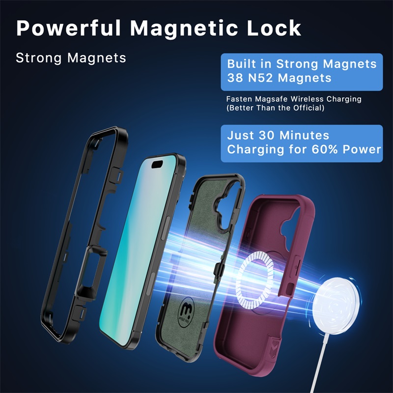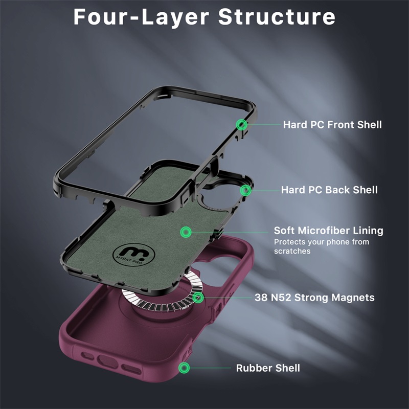 Designed to cater to the needs of your customers, the MyBat Pro Maverick Series Cases for iPhone 16 Plus seamlessly combine cutting-edge military-grade protection with a sophisticated design. Equip your customers to overcome daily challenges, from drops to scratches, empowering them to navigate their endeavors with unwavering confidence. Boasting raised bezel edges and a camera ring, their iPhone 16 Plus remains shielded in any scenario, ensuring uninterrupted productivity. Textured edges and a slip-resistant bumper grip offer a comfortable and secure hold, facilitating easy access to all essential functions and enhancing their efficiency. The modern MagSafe-compatible magnetic ring facilitates effortless attachment to metallic surfaces, accessories, and mounts, streamlining their productivity. The inclusion of a 360° rotating holster clip and kickstand provides unparalleled convenience, catering to their on-the-go demands. Built with antimicrobial materials, the Maverick case is a testament to the commitment to hygiene and protection, safeguarding against even the minutest threats in professional environments. The Maverick Series Cases stand as a trusted companion, preserving the impeccable condition of their iPhone 16 Plus while they navigate all daily adventures. MyBat Pro offers a limited lifetime warranty on the Maverick Series Case for iPhone 16 Plus in order to guarantee maximum customer satisfaction and quality. Features: MagSafe Compatible +AttachMe Magnetic Ring Alignment Attaches to Metallic Surfaces + Mounts Triple-Layer Defense Superior Durability Military Grade Drop Protection Raised Bezel Edges & Camera Ring Rounded Shock Absorbing Corners Non-Slip Bumper Grip Antimicrobial Materials 360° Rotating Holster Clip & Kickstand