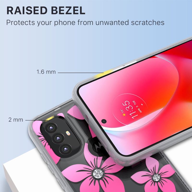 Bring a bold style with some serious sparkle to your customer's Motorola Moto G Power (2022) with the Mood Diamond Series Case. It is available in attractive packaging that makes it stand out on the shelf and shows off the product beautifully, making it an ideal addition to your inventory. The Blossoms Mood Diamond Series Moto G Power (2022) Case shows your customer's elegant personality while matching their outfits, backpacks, bags, and great sense of style! The luxurious and chic Mood Diamond Series Moto G Power (2022) Case features raised bezel edges and anti-shock corners for maximum protection from falls, scratches, and cracks while being compact for easy access to all ports and buttons. The ultra-slim and lightweight design ensure your customers don't have to remove the case every time they need to recharge! Crafted from premium fingerprint-resistant materials, smudges, grease, and dirt will never out style your customer’s Mood Diamond Series Moto G Power (2022) Case. MyBat Pro offers an extended lifetime warranty for the Mood Diamond Series Case For Moto G Power (2022), ensuring the best quality, performance, and customer satisfaction. Features: Impact & Shock Protection Raised Bezel Edges Non-Slip Bumper Grip Premium Fingerprint-Resistant Materials Easy Access: Ports & Buttons Wireless Charging Compatible Ultra-Slim, Lightweight & Minimal Design Lifetime Warranty
