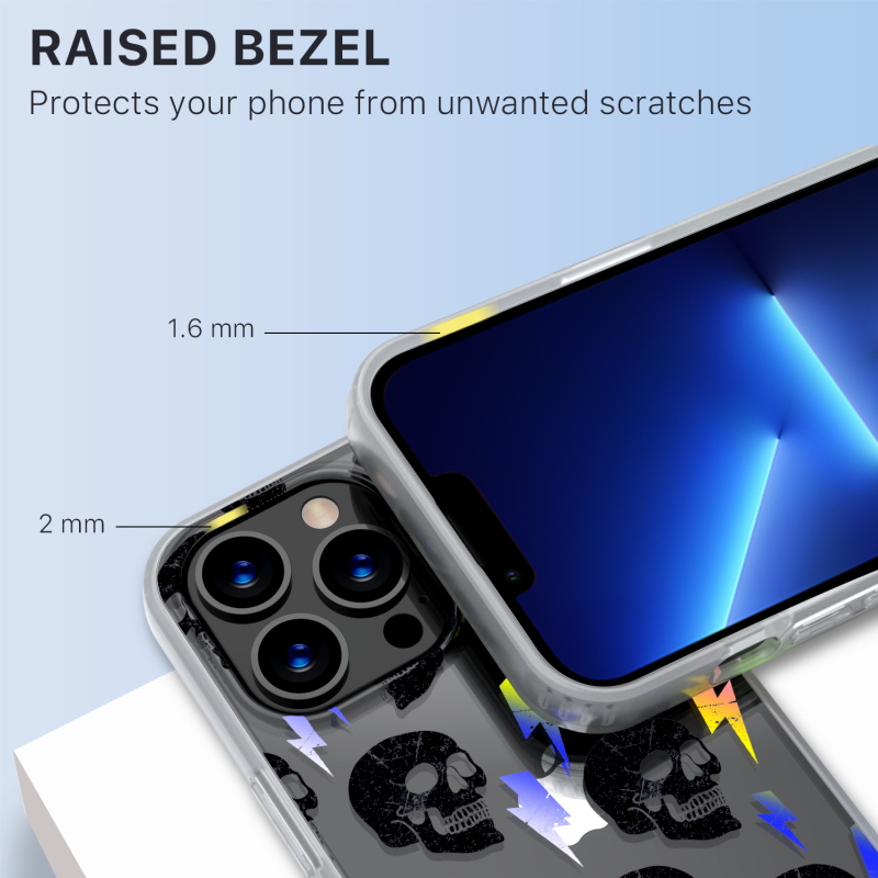 Bring bold style to your customer's Apple iPhone 13 Pro Max with the Mood Series Case. It is available in attractive packaging that makes it stand out on the shelf and shows off the product beautifully, making it an ideal addition to your inventory. The Punk Skull Mood Series iPhone 13 Pro Max Case shows your customer's unique personality while matching their outfits, backpacks, bags, and great sense of style! The elegant and fashionable Mood Series iPhone 13 Pro Max Case features raised bezel edges and anti-shock corners for maximum protection from falls, scratches, and cracks while being compact for easy access to all ports and buttons. The ultra-slim and lightweight design ensure your customers don't have to remove the case every time they need to recharge! Crafted from premium fingerprint-resistant materials, smudges, grease, and dirt will never out style your customer’s Mood Series iPhone 13 Pro Max Case. MyBat Pro offers an extended lifetime warranty for the Mood Series Case For iPhone 13 Pro Max, ensuring the best quality, performance, and customer satisfaction. Features: Impact & Shock Protection Raised Bezel Edges Non-Slip Bumper Grip Premium Fingerprint-Resistant Materials Easy Access: Ports & Buttons Wireless Charging Compatible Ultra-Slim, Lightweight & Minimal Design Lifetime Warranty