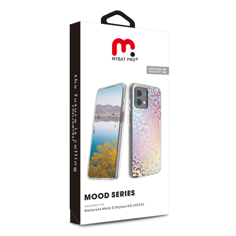 Bring bold style to your customer's Motorola Moto G Stylus 4G (2023) with the Mood Series Case. It is available in attractive packaging that makes it stand out on the shelf and shows off the product beautifully, making it an ideal addition to your inventory.The Holographic Leopard Mood Series Moto G Stylus 4G (2023) Case shows your customer's unique personality while matching their outfits, backpacks, bags, and great sense of style! The elegant and fashionable Mood Series Motorola Moto G Stylus 4G (2023) Case features raised bezel edges and anti-shock corners for maximum protection from falls, scratches, and cracks while being compact for easy access to all ports and buttons. The ultra-slim and lightweight design ensure your customers don't have to remove the case every time they need to recharge! Crafted from premium fingerprint-resistant materials, smudges, grease, and dirt will never out style your customer’s Mood Series Moto G Stylus 4G (2023) Case.MyBat Pro offers an extended lifetime warranty for the Mood Series Case For Moto G Stylus 4G (2023), ensuring the best quality, performance, and customer satisfaction.Features:Impact & Shock ProtectionRaised Bezel EdgesNon-Slip Bumper GripPremium Fingerprint-Resistant MaterialsEasy Access: Ports & ButtonsWireless Charging CompatibleUltra-Slim, Lightweight & Minimal DesignLifetime Warranty