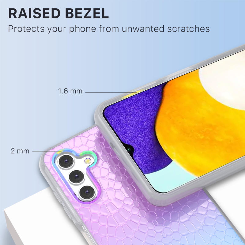 Bring bold style to your customer's Samsung Galaxy A13 5G with the Mood Series Case. It is available in attractive packaging that makes it stand out on the shelf and shows off the product beautifully, making it an ideal addition to your inventory. The Iridescent Snake Mood Series Galaxy A13 5G Case shows your customer's unique personality while matching their outfits, backpacks, bags, and great sense of style! The elegant and fashionable Mood Series Galaxy A13 5G Case features raised bezel edges and anti-shock corners for maximum protection from falls, scratches, and cracks while being compact for easy access to all ports and buttons. The ultra-slim and lightweight design ensure your customers don't have to remove the case every time they need to recharge! Crafted from premium fingerprint-resistant materials, smudges, grease, and dirt will never out style your customer’s Mood Series Galaxy A13 5G Case. MyBat Pro offers an extended lifetime warranty for the Mood Series Case For Galaxy A13 5G, ensuring the best quality, performance, and customer satisfaction. Features: Impact & Shock Protection Raised Bezel Edges Non-Slip Bumper Grip Premium Fingerprint-Resistant Materials Easy Access: Ports & Buttons Wireless Charging Compatible Ultra-Slim, Lightweight & Minimal Design Lifetime Warranty