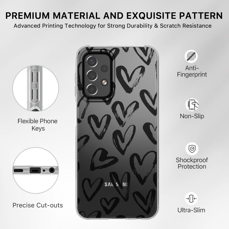 Bring bold style to your customer's Samsung Galaxy A23 5G with the Mood Series Case. It is available in attractive packaging that makes it stand out on the shelf and shows off the product beautifully, making it an ideal addition to your inventory.The Black Hearts Mood Series Galaxy A23 5G Case shows your customer's unique personality while matching their outfits, backpacks, bags, and great sense of style! The elegant and fashionable Mood Series Galaxy A23 5G Case features raised bezel edges and anti-shock corners for maximum protection from falls, scratches, and cracks while being compact for easy access to all ports and buttons. The ultra-slim and lightweight design ensure your customers don't have to remove the case every time they need to recharge! Crafted from premium fingerprint-resistant materials, smudges, grease, and dirt will never out style your customer’s Mood Series Galaxy A23 5G Case.MyBat Pro offers an extended lifetime warranty for the Mood Series Case For Galaxy A23 5G, ensuring the best quality, performance, and customer satisfaction.Features:Impact & Shock ProtectionRaised Bezel EdgesNon-Slip Bumper GripPremium Fingerprint-Resistant MaterialsEasy Access: Ports & ButtonsWireless Charging CompatibleUltra-Slim, Lightweight & Minimal DesignLifetime Warranty