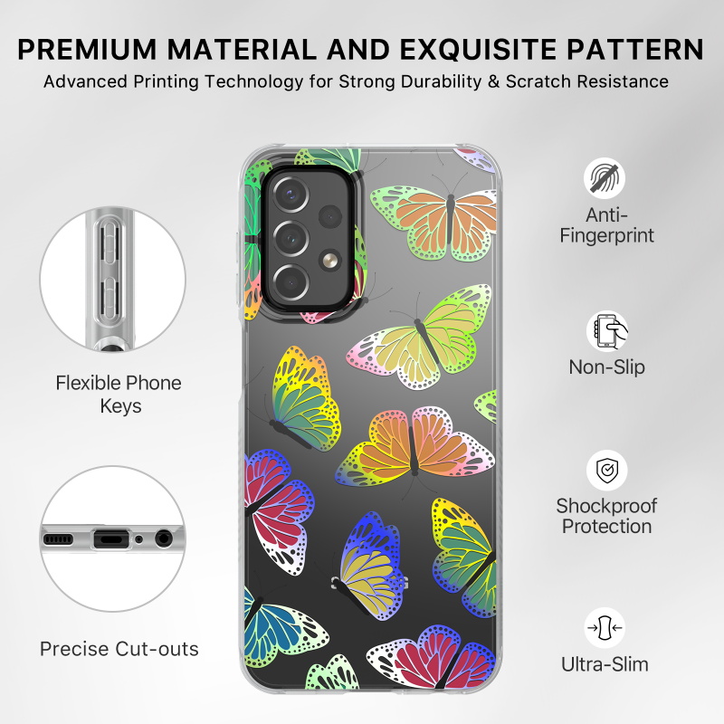 Bring bold style to your customer's Samsung Galaxy A23 5G with the Mood Series Case. It is available in attractive packaging that makes it stand out on the shelf and shows off the product beautifully, making it an ideal addition to your inventory.The Neon Butterflies Mood Series Galaxy A23 5G Case shows your customer's unique personality while matching their outfits, backpacks, bags, and great sense of style! The elegant and fashionable Mood Series Galaxy A23 5G Case features raised bezel edges and anti-shock corners for maximum protection from falls, scratches, and cracks while being compact for easy access to all ports and buttons. The ultra-slim and lightweight design ensure your customers don't have to remove the case every time they need to recharge! Crafted from premium fingerprint-resistant materials, smudges, grease, and dirt will never out style your customer’s Mood Series Galaxy A23 5G Case.MyBat Pro offers an extended lifetime warranty for the Mood Series Case For Galaxy A23 5G, ensuring the best quality, performance, and customer satisfaction.Features:Impact & Shock ProtectionRaised Bezel EdgesNon-Slip Bumper GripPremium Fingerprint-Resistant MaterialsEasy Access: Ports & ButtonsWireless Charging CompatibleUltra-Slim, Lightweight & Minimal DesignLifetime Warranty