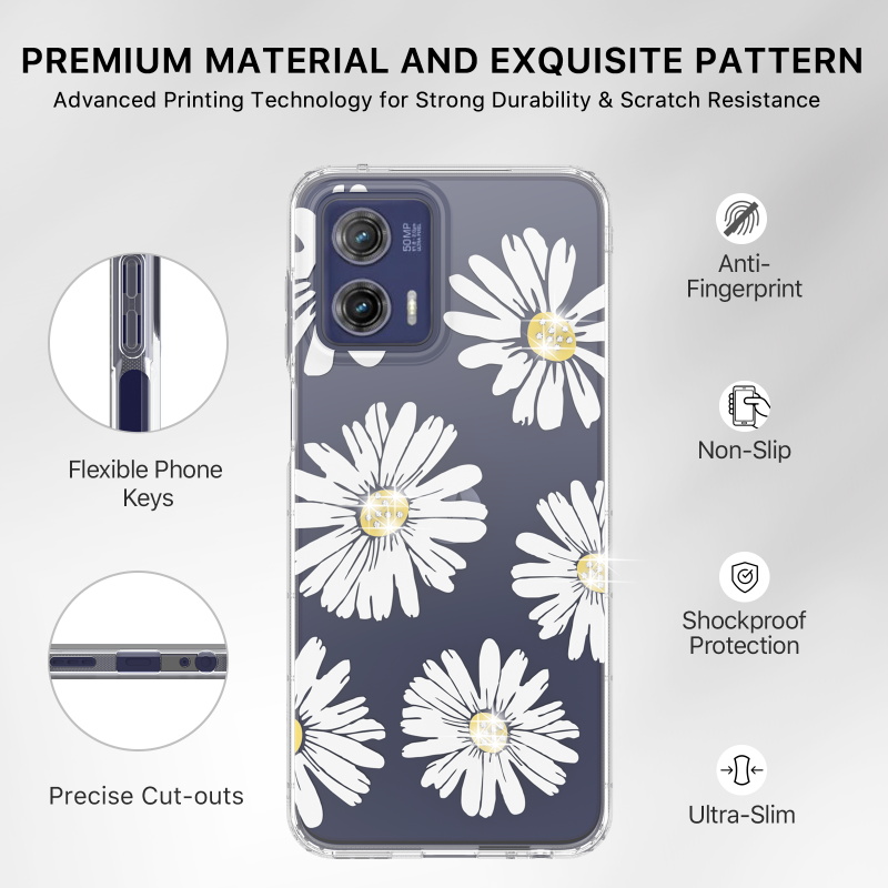 Bring a bold style with some serious sparkle to your customer's Motorola Moto G 5G (2023) with the Mood Diamond Series Case. It is available in attractive packaging that makes it stand out on the shelf and shows off the product beautifully, making it an ideal addition to your inventory.The Happy Daisies Mood Diamond Series Moto G 5G (2023) Case shows your customer's elegant personality while matching their outfits, backpacks, bags, and great sense of style! The luxurious and chic Mood Diamond Series Moto G 5G (2023) Case features raised bezel edges and anti-shock corners for maximum protection from falls, scratches, and cracks while being compact for easy access to all ports and buttons. The ultra-slim and lightweight design ensure your customers don't have to remove the case every time they need to recharge! Crafted from premium fingerprint-resistant materials, smudges, grease, and dirt will never out style your customer’s Mood Diamond Series Moto G 5G (2023) Case.MyBat Pro offers an extended lifetime warranty for the Mood Diamond Series Case For Moto G 5G (2023), ensuring the best quality, performance, and customer satisfaction.Features:Impact & Shock ProtectionRaised Bezel EdgesNon-Slip Bumper GripPremium Fingerprint-Resistant MaterialsEasy Access: Ports & ButtonsWireless Charging CompatibleUltra-Slim, Lightweight & Minimal DesignLifetime Warranty