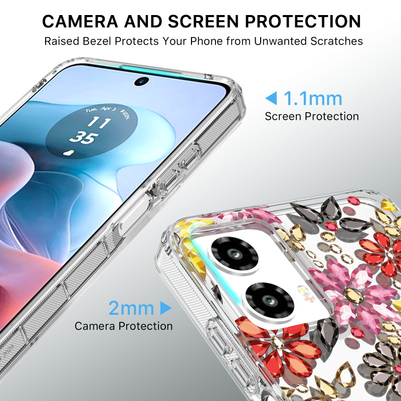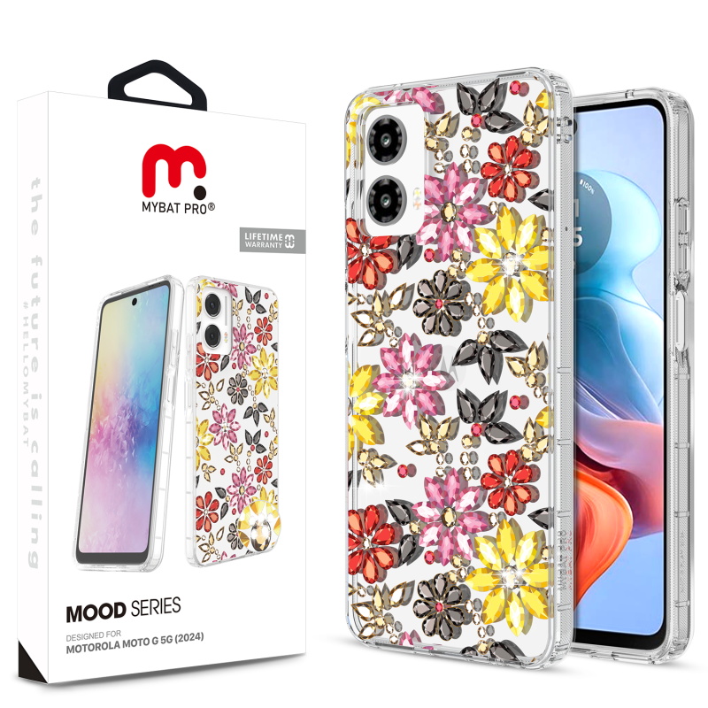 Bring a bold style with some serious sparkle to your customer's Motorola Moto G 5G (2024) with the Mood Diamond Series Case. It is available in attractive packaging that makes it stand out on the shelf and shows off the product beautifully, making it an ideal addition to your inventory.Moto G 5G (2024) Case shows your customer's elegant personality while matching their outfits, backpacks, bags, and great sense of style! The luxurious and chic Mood Diamond Series Moto G 5G (2024) Case features raised bezel edges and anti-shock corners for maximum protection from falls, scratches, and cracks while being compact for easy access to all ports and buttons. The ultra-slim and lightweight design ensure your customers don't have to remove the case every time they need to recharge! Crafted from premium fingerprint-resistant materials, smudges, grease, and dirt will never out style your customer’s Mood Diamond Series Moto G 5G (2024) Case.MyBat Pro offers an extended lifetime warranty for the Mood Diamond Series Case For Moto G 5G (2024) , ensuring the best quality, performance, and customer satisfaction.Features:Impact & Shock ProtectionRaised Bezel EdgesNon-Slip Bumper GripPremium Fingerprint-Resistant MaterialsEasy Access: Ports & ButtonsWireless Charging CompatibleUltra-Slim, Lightweight & Minimal DesignLifetime Warranty