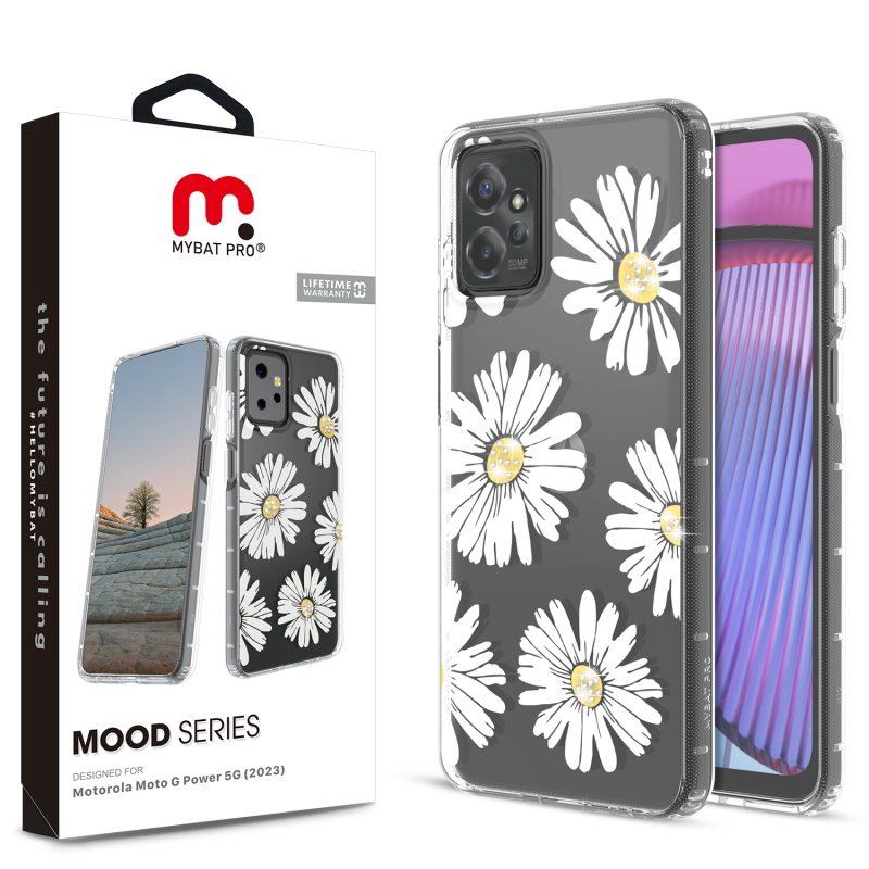 Bring a bold style with some serious sparkle to your customer's Motorola Moto G Power 5G (2023) with the Mood Diamond Series Case. It is available in attractive packaging that makes it stand out on the shelf and shows off the product beautifully, making it an ideal addition to your inventory.The Happy Daisies Mood Diamond Series Moto G Power 5G (2023) Case shows your customer's elegant personality while matching their outfits, backpacks, bags, and great sense of style! The luxurious and chic Mood Diamond Series Moto G Power 5G (2023) Case features raised bezel edges and anti-shock corners for maximum protection from falls, scratches, and cracks while being compact for easy access to all ports and buttons. The ultra-slim and lightweight design ensure your customers don't have to remove the case every time they need to recharge! Crafted from premium fingerprint-resistant materials, smudges, grease, and dirt will never out style your customer’s Mood Diamond Series Moto G Power 5G (2023) Case.MyBat Pro offers an extended lifetime warranty for the Mood Diamond Series Case For Moto G Power 5G (2023), ensuring the best quality, performance, and customer satisfaction.Features:Impact & Shock ProtectionRaised Bezel EdgesNon-Slip Bumper GripPremium Fingerprint-Resistant MaterialsEasy Access: Ports & ButtonsWireless Charging CompatibleUltra-Slim, Lightweight & Minimal DesignLifetime Warranty