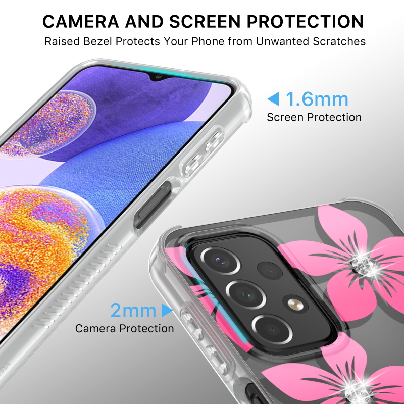 Bring a bold style with some serious sparkle to your customer's Samsung Galaxy A23 5G with the Mood Diamond Series Case. It is available in attractive packaging that makes it stand out on the shelf and shows off the product beautifully, making it an ideal addition to your inventory.The Blossoms Mood Diamond Series Galaxy A23 5G Case shows your customer's elegant personality while matching their outfits, backpacks, bags, and great sense of style! The luxurious and chic Mood Diamond Series Galaxy A23 5G Case features raised bezel edges and anti-shock corners for maximum protection from falls, scratches, and cracks while being compact for easy access to all ports and buttons. The ultra-slim and lightweight design ensure your customers don't have to remove the case every time they need to recharge! Crafted from premium fingerprint-resistant materials, smudges, grease, and dirt will never out style your customer’s Mood Diamond Series Galaxy A23 5G Case.MyBat Pro offers an extended lifetime warranty for the Mood Diamond Series Case For Galaxy A23 5G, ensuring the best quality, performance, and customer satisfaction.Features:Impact & Shock ProtectionRaised Bezel EdgesNon-Slip Bumper GripPremium Fingerprint-Resistant MaterialsEasy Access: Ports & ButtonsWireless Charging CompatibleUltra-Slim, Lightweight & Minimal DesignLifetime Warranty