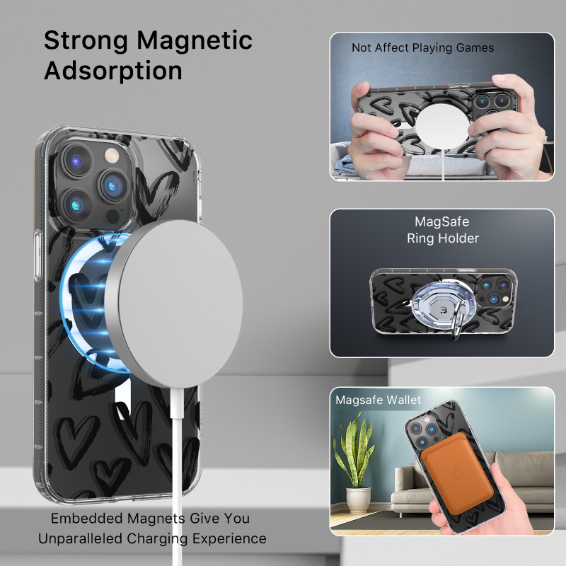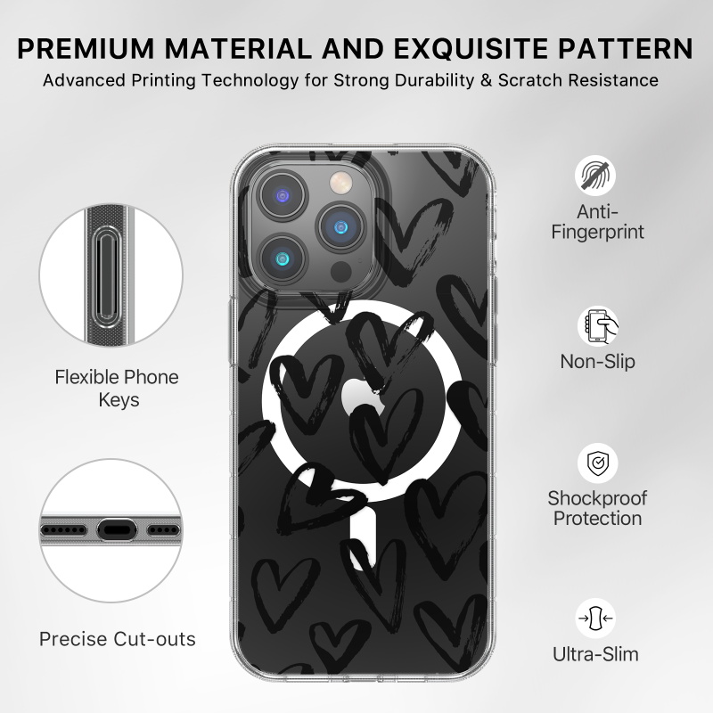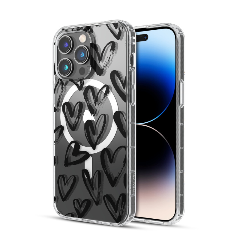 Bring bold style with a magnetic hold to your customer's Apple iPhone 14 Pro (6.1) with the Mood Series MagSafe Case. It is available in attractive packaging that makes it stand out on the shelf and shows off the product beautifully, making it an ideal addition to your inventory. The Chic Mood Series MagSafe iPhone 14 Pro (6.1) Case shows off your customer's unique personality with it's cool black hearts design while matching their outfits, backpacks, bags, and awesome sense of style! By using the included +AttachMe magnetic ring, the case is compatible with all MagSafe accessories, chargers, and mounts, and locks on securely with an incredibly powerful magnetic hold. The elegant and fashionable Mood Series MagSafe iPhone 14 Pro (6.1) Case features raised bezel edges and anti-shock corners for maximum protection from falls, scratches, and cracks while being compact for easy access to all ports and buttons. Crafted from premium materials, smudges, grease, and dirt will never out style your customer’s Mood Series MagSafe iPhone 14 Pro (6.1) Case. MyBat Pro offers an extended lifetime warranty for the Mood Series MagSafe Case For iPhone 14 Pro (6.1), ensuring the best quality, performance, and customer satisfaction. Features: Impact & Shock Protection Raised Bezel Edges Non-Slip Bumper Grip Easy Access: Ports & Buttons +AttachMe Magnetic Ring Alignment MagSafe Compatible Ultra-Slim, Lightweight Design Lifetime Warranty