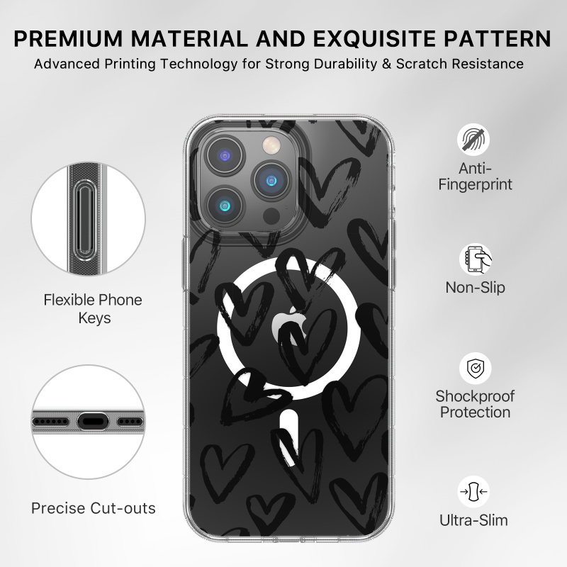 MyBat Pro Mood Series MagSafe Case for Apple iPhone 14 Pro Max (6.7) - Black Hearts
