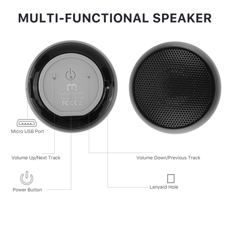 Impress your customers with the powerful high-definition sound of the pocket-sized Palm Bluetooth speaker from MyBat Pro. Featuring impressive packaging, these attractive, trendy speakers are sure to fly off the shelves, making them an ideal addition to your inventory!For a clear, immersive audio experience, the Palm Bluetooth Speaker supports Bluetooth 5.3, which simplifies syncing and pairing across all wireless devices. Powered by a powerful 3W output and a massive 30mm driver, the Palm fills any room with deep bass, crystal-clear mids, and breathtaking highs! A built-in microphone and controls enable your customers to quickly navigate playlists, make or receive calls, and adjust the volume. The 500mAH battery provides non-stop play for five hours on a single charge. Your customers can easily take the Palm from a shelf or table to a picnic or party using the belt-mounted wristlet carrying strap.MyBat Pro offers a limited one-year warranty for the Palm Bluetooth Speaker, ensuring the best quality, performance, and customer satisfaction.Features:Powerful High-Definition SoundWireless Music & CallsBuilt-In MicrophoneUp to 5 HRS of PlaytimeLED Battery Life IndicatorConvenient Wristlet Carrying StrapUltra-Compact, Lightweight & PortableLimited 1 -Year Warranty