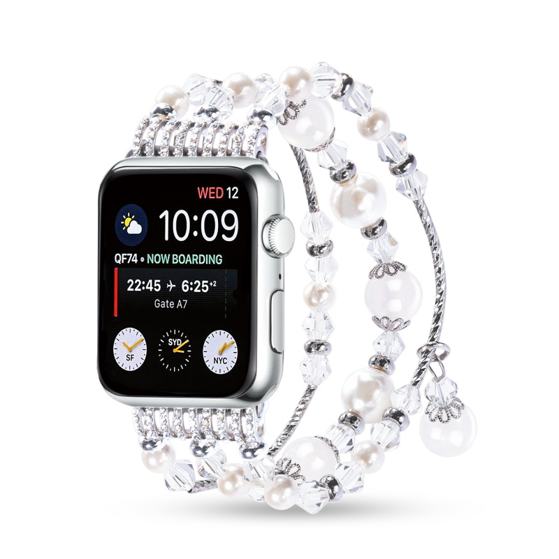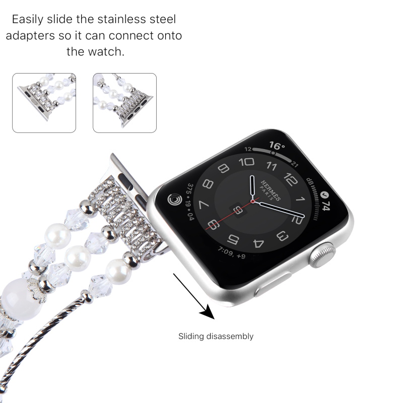 Your customers will feel and look like royalty as the regal agate pearl and silver links of the Pearl Watchband from MyBat Pro will transform their Apple Watch into an elegant piece of jewelry. It is available in attractive packaging that makes it stand out on the shelf and shows off the product beautifully, making it an ideal addition to your inventory. Your customers' Apple Watch will be outfitted like a true head-turner with the Pearl Watchband as it fits all Apple Watch models, including the new Apple Watch Series 7. The stainless steel connectors make a quick and easy installation for your customers. The comfortable elastic band fits their wrist like a designer bracelet, so they can flaunt their glamorous style wherever they go. MyBat Pro offers an extended lifetime warranty for the Pearl Apple Watchband - 42mm | 44mm | 45mm, ensuring the best quality, performance, and customer satisfaction. Features: For Apple Watch Series 1/2/3/4/5/6/SE/7 Elegant Agate Pearl Beads Elastic Bracelet Design Easy Slide On/Off Suitable for All Wrist Sizes Stainless Steel Connectors Quick Installation & Removal Comfortable, Lightweight Design Lifetime Warranty