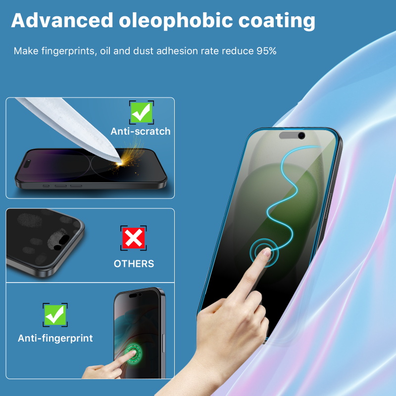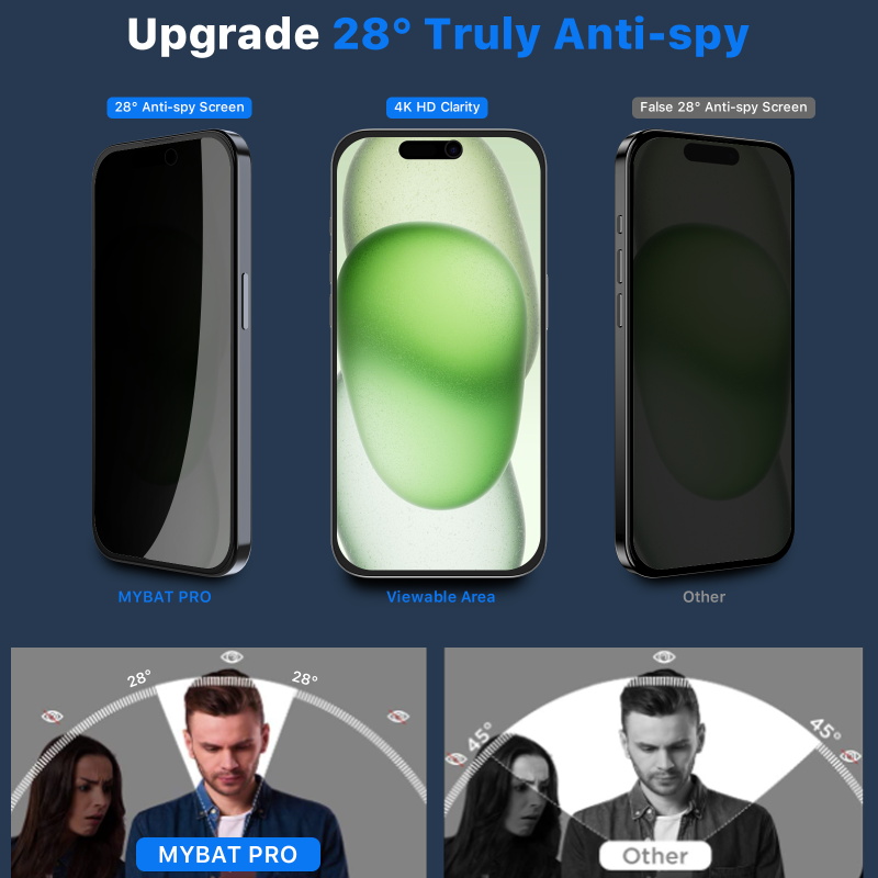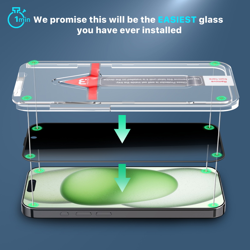 Provide your customers with enhanced iPhone 15 Plus (6.7) protection and privacy with the MyBat Pro Privacy Tempered Glass Screen Protector, complete with an installation tray. This multi-layer defense keeps sensitive information private while delivering diamond-level 9H hardness that's 5X stronger than standard glass. At only 0.33mm thick and incredibly lightweight, your customers can enjoy peace of mind with maximum scratch, drop, impact, and shatter protection. The oleophobic coating ensures a smudge-free experience, and the perfect fit won't compromise visibility or touch sensitivity Backed by MyBat Pro’s limited lifetime warranty, the Privacy Full Coverage Tempered Glass With Installation Tray ensures the quality and performance your customers deserve. Stand behind a product that allows your customers to keep their privacy. Features: Peel & Apply - Quick-Installation Self-Aligning No-Peek Privacy Edge-To-Edge Full Coverage 9H Hardness Rating Multi-Layered 5X Stronger Than Standard Glass Scratch Resistant Impact & Shatter Protection Oleophobic Anti-Fingerprint Coating High-Definition Screen Clarity Incredibly Thin: 0.33mm Rounded Edges High-Response Touch Sensitivity Lifetime Warranty