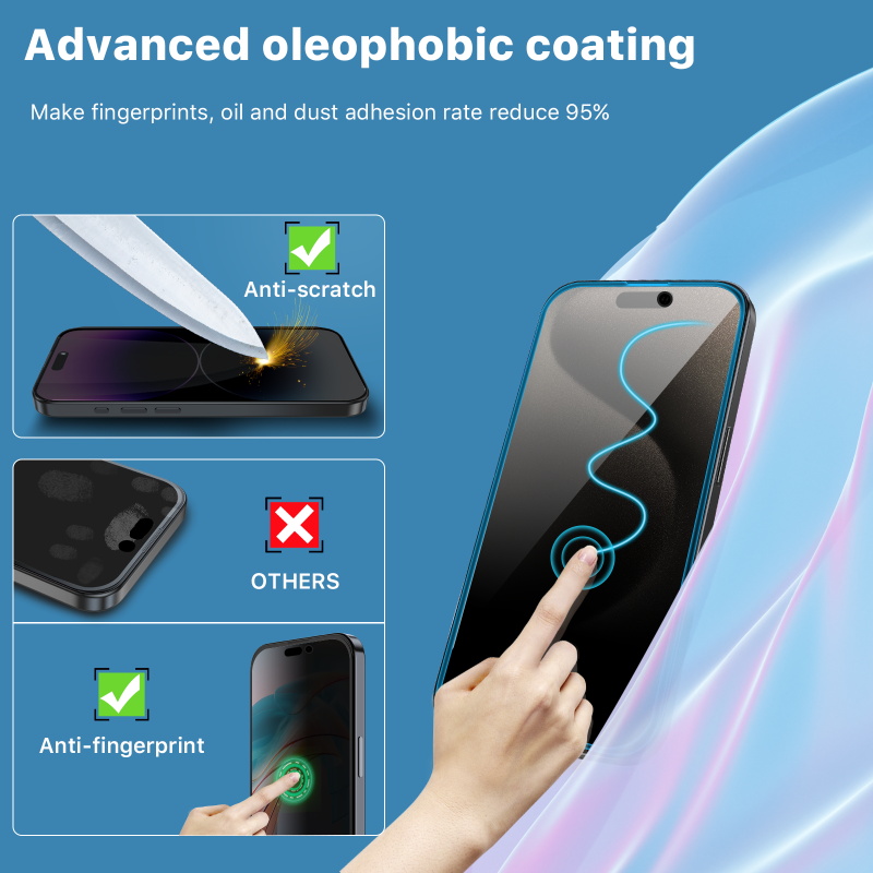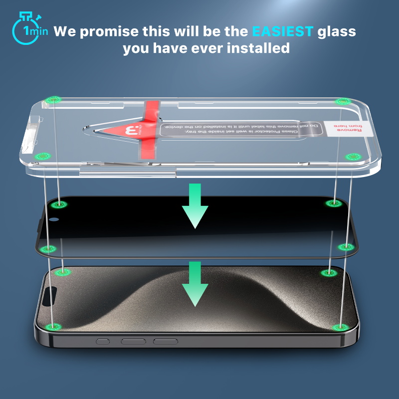 Provide your customers with enhanced iPhone 15 Pro (6.1) protection and privacy with the MyBat Pro Privacy Tempered Glass Screen Protector, complete with an installation tray. This multi-layer defense keeps sensitive information private while delivering diamond-level 9H hardness that's 5X stronger than standard glass. At only 0.33mm thick and incredibly lightweight, your customers can enjoy peace of mind with maximum scratch, drop, impact, and shatter protection. The oleophobic coating ensures a smudge-free experience, and the perfect fit won't compromise visibility or touch sensitivity Backed by MyBat Pro’s limited lifetime warranty, the Privacy Full Coverage Tempered Glass With Installation Tray ensures the quality and performance your customers deserve. Stand behind a product that allows your customers to keep their privacy. Features: Peel & Apply - Quick-Installation Self-Aligning No-Peek Privacy Edge-To-Edge Full Coverage 9H Hardness Rating Multi-Layered 5X Stronger Than Standard Glass Scratch Resistant Impact & Shatter Protection Oleophobic Anti-Fingerprint Coating High-Definition Screen Clarity Incredibly Thin: 0.33mm Rounded Edges High-Response Touch Sensitivity Lifetime Warranty