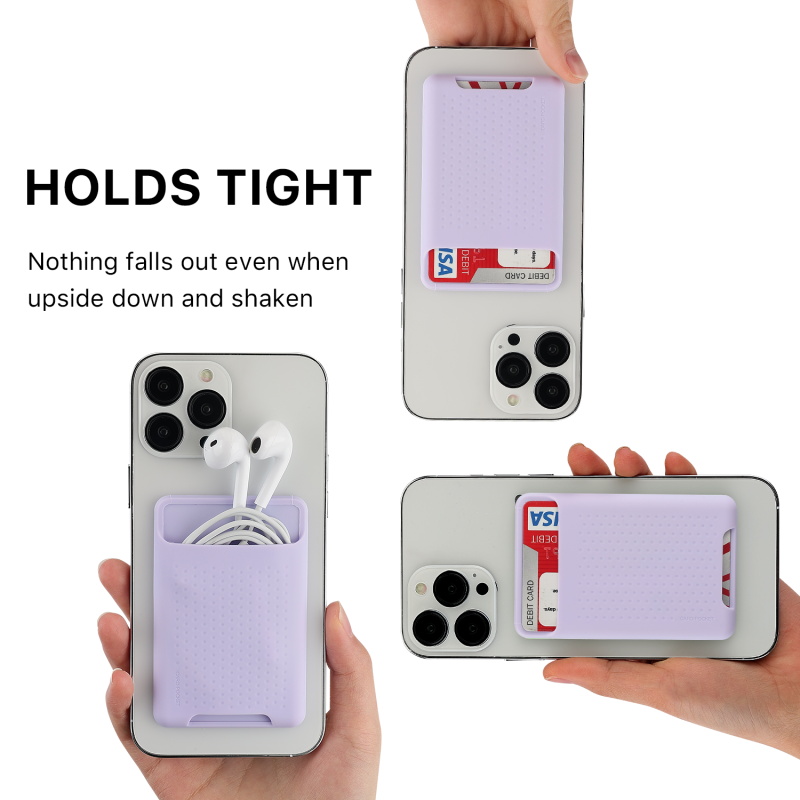 Simplified Convenience Say goodbye to bulky wallets and handbags, this ultra-thin credit card sleeve attaches to the back of your phone, just put your phone in your pocket, and you can travel easily, carry it with you without any extra burden, making your daily life more convenient and worry-free! High-Quality Non-slip Silicone Material The phone wallet is made of high-quality non-slip silicone to ensure that your cards are safe and secure. The cardholder for the phone case adopts a special top design, even if the phone is turned upside down, your cards will not slide out or fall out, so you can confidently put your cash, driver's license, and credit cards in the pocket of your phone. Easy to Install and Use Before sticking the credit card holder, make sure the back of the phone is clean and dry, tear off the self-adhesive sticker, and then stick the sticky phone wallet on the back of the phone. After sticking, press firmly and wait for 30 minutes to ensure strong adhesion. This simple installation process ensures that your cell phone wallet will be firmly attached to your phone. Multi-Functional Applicable Cell phone accessories are more than just a cell phone wallet, you can also attach it to your car, desk, refrigerator, or anywhere else you want and get extra storage space.