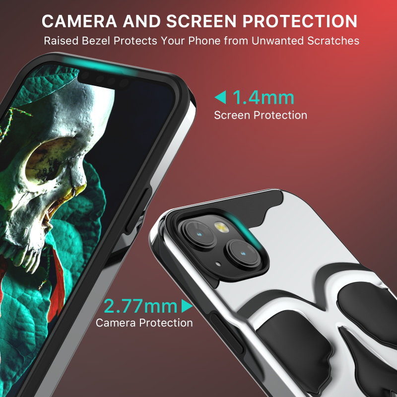 MyBat Pro Skullcap Hybrid Protector Cover for Apple iPhone 14 Plus (6.7) - Silver Plating / Black