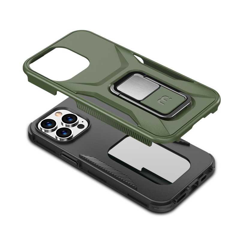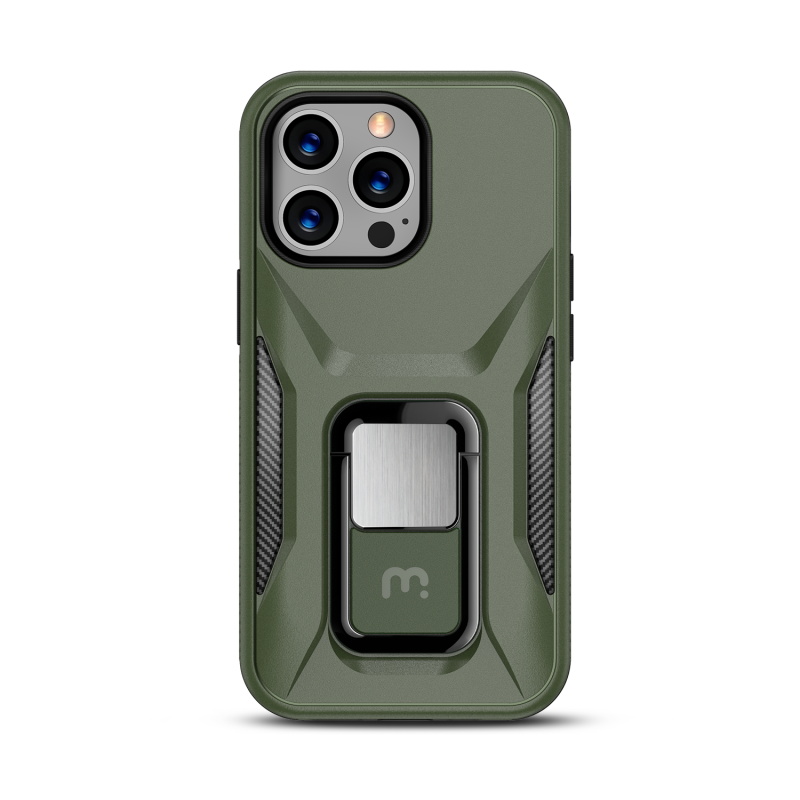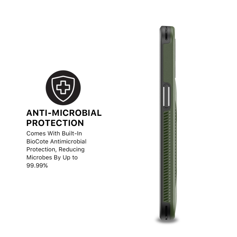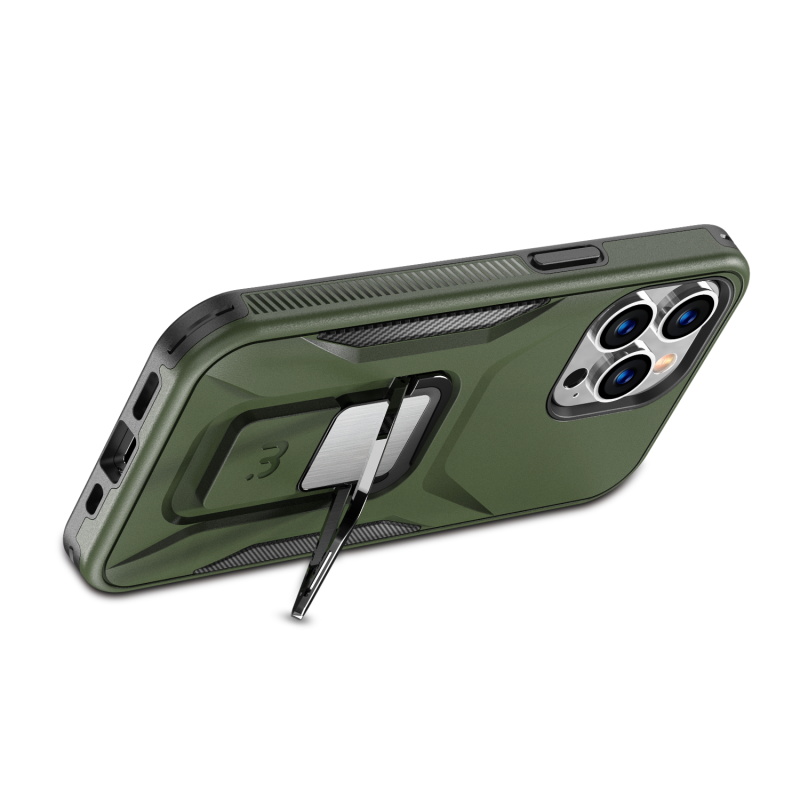 Provide your customers with the protection and ruggedness their for their Apple iPhone 13 Pro need to match their active lifestyles with the Army Green Stealth Series Case from MyBat Pro. It is available in attractive packaging that makes it stand out on the shelf and shows off the product beautifully, making it an ideal addition to your inventory. Designed to protect your customer's iPhone 13 Pro from accidental scratches, bumps, and drops, the Stealth offers 2X more durability than standard cases as its military-grade durable polycarbonate outer shell and inner padded TPU shell set a new standard in phone safety. Using the stylish and discrete ring holder, users can ward off accidental drops or use it as a kickstand for hands-free media viewing on the go. A metal plate built into the case allows for quick and easy attachment to any magnetic mount, ensuring the case is versatile enough for any journey. The Stealth Military Grade iPhone 13 Pro Cases are also lined with anti-microbial fabric to keep customers safe from hidden threats such as bacteria and germs. Features: Military-Grade Drop Protection Shock Protection Raised Bezel Edges Non-Slip Bumper Grip Easy Access: Ports & Buttons Anti-Microbial Lining Ring Holder Horizontal Kickstand Built-In Metal Plate Compatible with Magnetic Mounts Lifetime Warranty *** Note: Not Wireless Charging Compatible ***