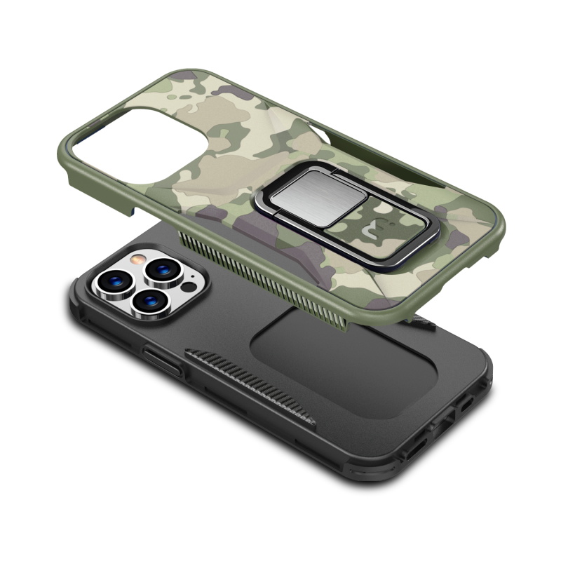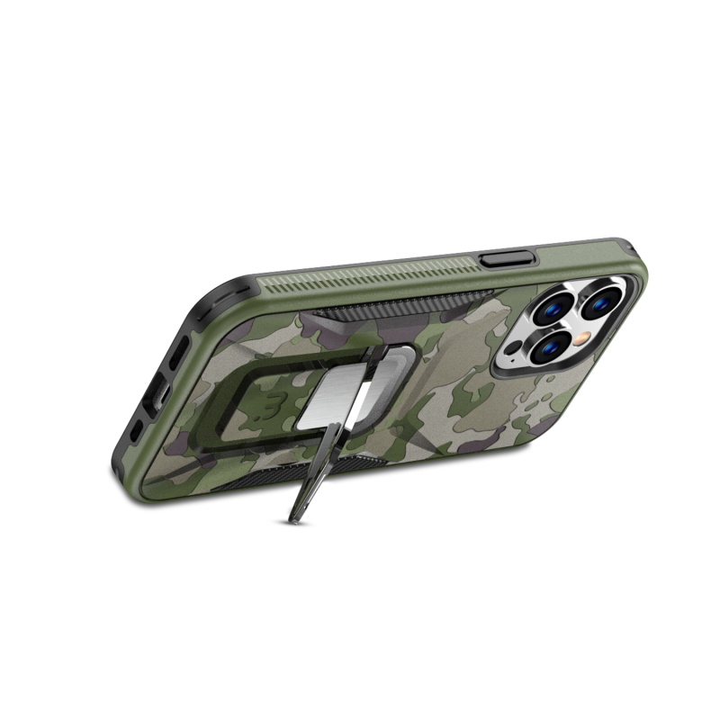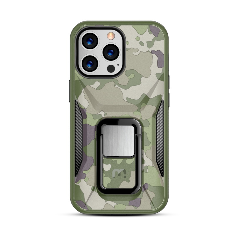 Provide your customers with the protection and ruggedness their for their Apple iPhone 13 Pro need to match their active lifestyles with the Army Green Camo Stealth Series Case from MyBat Pro. It is available in attractive packaging that makes it stand out on the shelf and shows off the product beautifully, making it an ideal addition to your inventory. Designed to protect your customer's iPhone 13 Pro from accidental scratches, bumps, and drops, the Stealth offers 2X more durability than standard cases as its military-grade durable polycarbonate outer shell and inner padded TPU shell set a new standard in phone safety. Using the stylish and discrete ring holder, users can ward off accidental drops or use it as a kickstand for hands-free media viewing on the go. A metal plate built into the case allows for quick and easy attachment to any magnetic mount, ensuring the case is versatile enough for any journey. The Stealth Military Grade iPhone 13 Pro Cases are also lined with anti-microbial fabric to keep customers safe from hidden threats such as bacteria and germs. Features: Military-Grade Drop Protection Shock Protection Raised Bezel Edges Non-Slip Bumper Grip Easy Access: Ports & Buttons Anti-Microbial Lining Ring Holder Horizontal Kickstand Built-In Metal Plate Compatible with Magnetic Mounts Lifetime Warranty *** Note: Not Wireless Charging Compatible ***