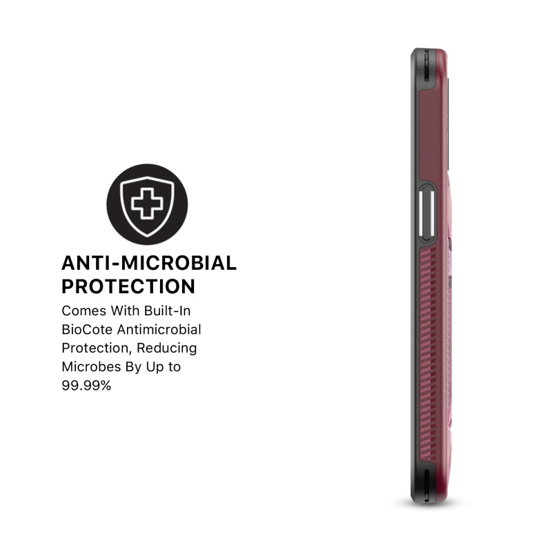 Provide your customers with the protection and ruggedness their for their Apple iPhone 13 Pro need to match their active lifestyles with the Plum Camo Stealth Series Case from MyBat Pro. It is available in attractive packaging that makes it stand out on the shelf and shows off the product beautifully, making it an ideal addition to your inventory. Designed to protect your customer's iPhone 13 Pro from accidental scratches, bumps, and drops, the Stealth offers 2X more durability than standard cases as its military-grade durable polycarbonate outer shell and inner padded TPU shell set a new standard in phone safety. Using the stylish and discrete ring holder, users can ward off accidental drops or use it as a kickstand for hands-free media viewing on the go. A metal plate built into the case allows for quick and easy attachment to any magnetic mount, ensuring the case is versatile enough for any journey. The Stealth Military Grade iPhone 13 Pro Cases are also lined with anti-microbial fabric to keep customers safe from hidden threats such as bacteria and germs. Features: Military-Grade Drop Protection Shock Protection Raised Bezel Edges Non-Slip Bumper Grip Easy Access: Ports & Buttons Anti-Microbial Lining Ring Holder Horizontal Kickstand Built-In Metal Plate Compatible with Magnetic Mounts Lifetime Warranty *** Note: Not Wireless Charging Compatible ***