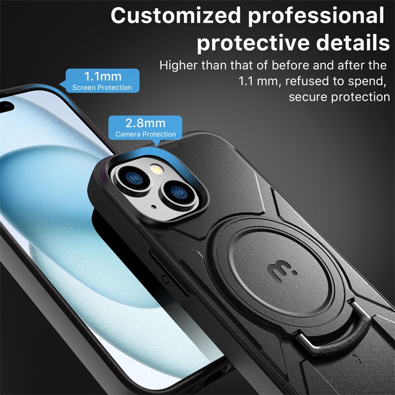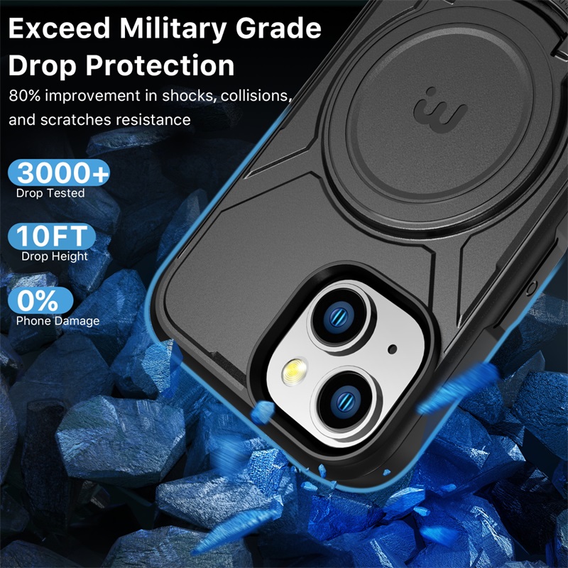 Engineered with a focus on safeguarding and endurance, MyBat Pro Stealth Series iPhone 15 (6.1) Case—an essential solution tailored to the demands of active lifestyles. This product, presented in captivating packaging that accentuates its elegance, seamlessly enhances your inventory. Amidst life's rigors, the Stealth Series MagSafe Case becomes an impervious protector for your customers' iPhone 15 (6.1), boasting twice the durability of regular cases with its fortified polycarbonate exterior and padded TPU interior. Elevated by rounded corners and raised edges, it excels in defense, fortified by a military-grade, 12-foot drop protection. Easy access to ports and buttons is guaranteed, thanks to its ergonomic design. Beyond mere protection, this case is aligned with modernity, functionality. The integrated ring holder kickstand, besides enabling swift texti Dual-Layered Construction Superior Durability 12FT Military-Grade Drop Protection Raised Bezel Edges & Camera Ring Rounded Shock-Absorbing Corners Non-Slip Bumper Grip Easy Access to Ports & Buttons Antimicrobial Materials Integrated Ring Holder Kickstand Lifetime Warranty