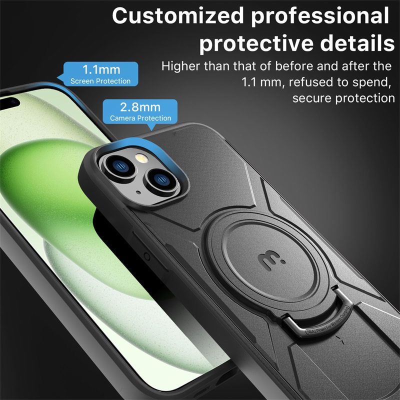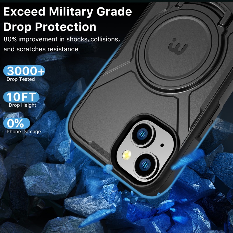 Engineered with a focus on safeguarding and endurance, MyBat Pro Stealth Series iPhone 15 Plus (6.7) Case—an essential solution tailored to the demands of active lifestyles. This product, presented in captivating packaging that accentuates its elegance, seamlessly enhances your inventory. Amidst life's rigors, the Stealth Series MagSafe Case becomes an impervious protector for your customers' iPhone 15 Plus (6.7), boasting twice the durability of regular cases with its fortified polycarbonate exterior and padded TPU interior. Elevated by rounded corners and raised edges, it excels in defense, fortified by a military-grade, 12-foot drop protection. Easy access to ports and buttons is guaranteed, thanks to its ergonomic design. Beyond mere protection, this case is aligned with modernity, functionality. The integrated ring holder kickstand, besides enabling swift texti Dual-Layered Construction Superior Durability 12FT Military-Grade Drop Protection Raised Bezel Edges & Camera Ring Rounded Shock-Absorbing Corners Non-Slip Bumper Grip Easy Access to Ports & Buttons Antimicrobial Materials Integrated Ring Holder Kickstand Lifetime Warranty