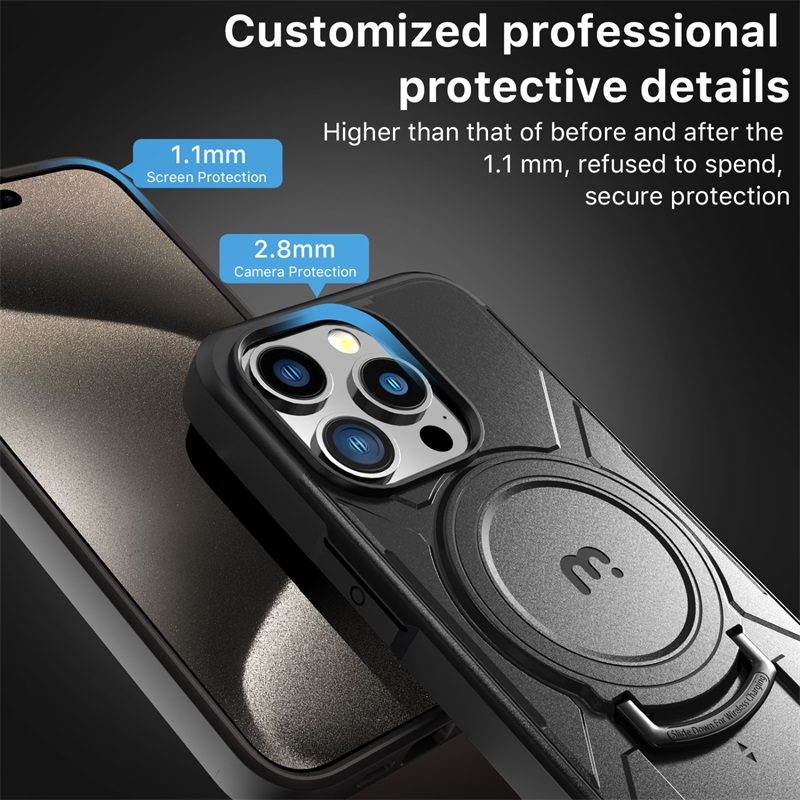 Engineered with a focus on safeguarding and endurance, MyBat Pro Stealth Series iPhone 15 Pro (6.1) Case—an essential solution tailored to the demands of active lifestyles. This product, presented in captivating packaging that accentuates its elegance, seamlessly enhances your inventory. Amidst life's rigors, the Stealth Series MagSafe Case becomes an impervious protector for your customers' iPhone 15 Pro (6.1) , boasting twice the durability of regular cases with its fortified polycarbonate exterior and padded TPU interior. Elevated by rounded corners and raised edges, it excels in defense, fortified by a military-grade, 12-foot drop protection. Easy access to ports and buttons is guaranteed, thanks to its ergonomic design. Beyond mere protection, this case is aligned with modernity, functionality. The integrated ring holder kickstand, besides enabling swift texti Dual-Layered Construction Superior Durability 12FT Military-Grade Drop Protection Raised Bezel Edges & Camera Ring Rounded Shock-Absorbing Corners Non-Slip Bumper Grip Easy Access to Ports & Buttons Antimicrobial Materials Integrated Ring Holder Kickstand Lifetime Warranty