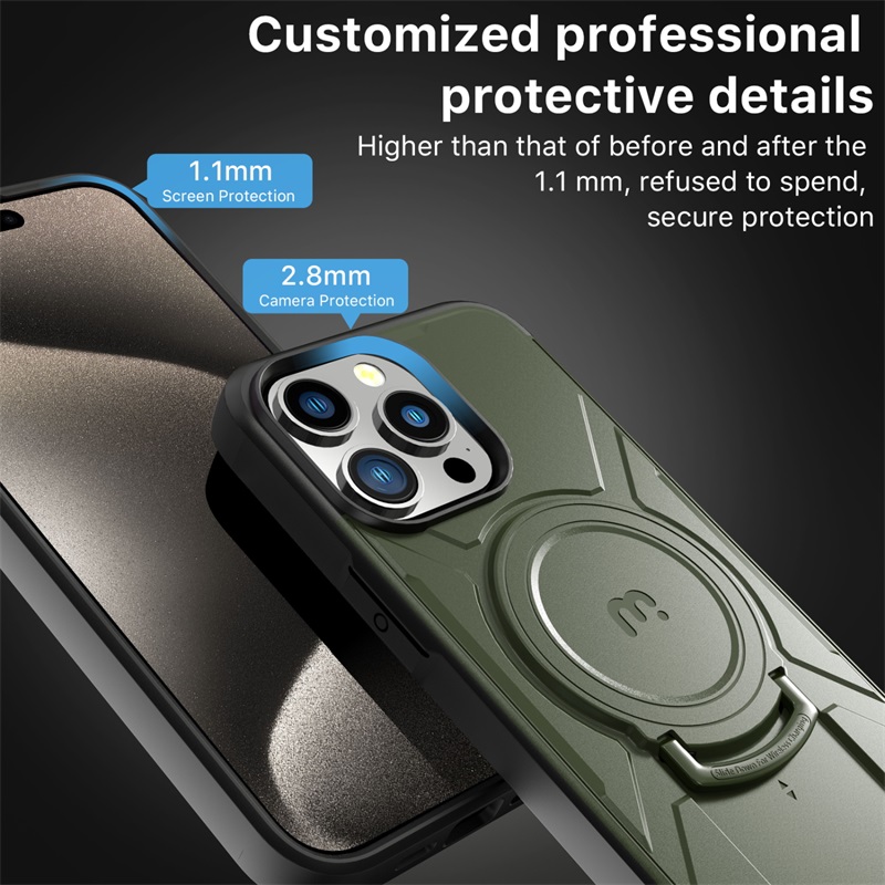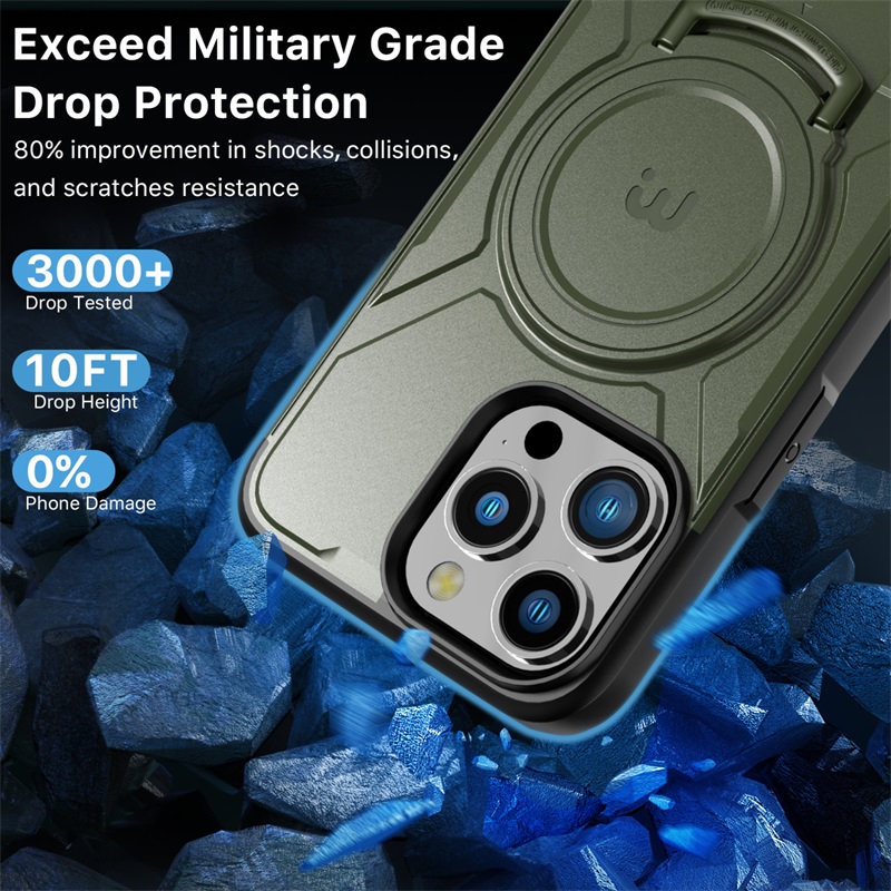 Engineered with a focus on safeguarding and endurance, MyBat Pro Stealth Series iPhone 15 Pro Max (6.7) Case—an essential solution tailored to the demands of active lifestyles. This product, presented in captivating packaging that accentuates its elegance, seamlessly enhances your inventory. Amidst life's rigors, the Stealth Series MagSafe Case becomes an impervious protector for your customers' iPhone 15 Pro Max (6.7), boasting twice the durability of regular cases with its fortified polycarbonate exterior and padded TPU interior. Elevated by rounded corners and raised edges, it excels in defense, fortified by a military-grade, 12-foot drop protection. Easy access to ports and buttons is guaranteed, thanks to its ergonomic design. Beyond mere protection, this case is aligned with modernity, functionality. The integrated ring holder kickstand, besides enabling swift texti Dual-Layered Construction Superior Durability 12FT Military-Grade Drop Protection Raised Bezel Edges & Camera Ring Rounded Shock-Absorbing Corners Non-Slip Bumper Grip Easy Access to Ports & Buttons Antimicrobial Materials Integrated Ring Holder Kickstand Lifetime Warranty