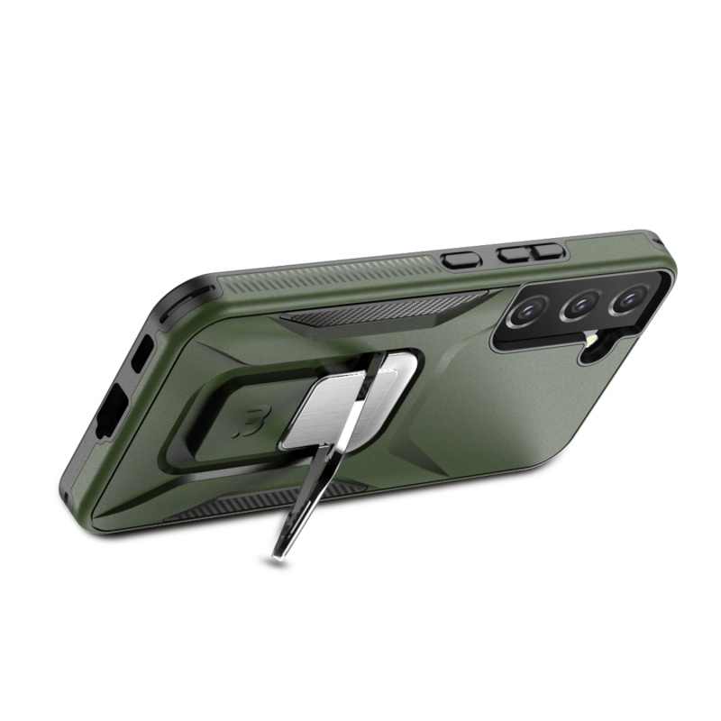 Provide your customers with the protection and ruggedness their for their Samsung Galaxy S22 Plus need to match their active lifestyles with the Army Green Stealth Series Case from MyBat Pro. It is available in attractive packaging that makes it stand out on the shelf and shows off the product beautifully, making it an ideal addition to your inventory. Designed to protect your customer's Galaxy S22 Plus from accidental scratches, bumps, and drops, the Stealth offers 2X more durability than standard cases as its military-grade durable polycarbonate outer shell and inner padded TPU shell set a new standard in phone safety. Using the stylish and discrete ring holder, users can ward off accidental drops or use it as a kickstand for hands-free media viewing on the go. A metal plate built into the case allows for quick and easy attachment to any magnetic mount, ensuring the case is versatile enough for any journey. The Stealth Military Grade Galaxy S22 Plus Cases are also lined with anti-microbial fabric to keep customers safe from hidden threats such as bacteria and germs. Features: Military-Grade Drop Protection Shock Protection Raised Bezel Edges Non-Slip Bumper Grip Easy Access: Ports & Buttons Anti-Microbial Lining Ring Holder Horizontal Kickstand Built-In Metal Plate Compatible with Magnetic Mounts Lifetime Warranty *** Note: Not Wireless Charging Compatible ***