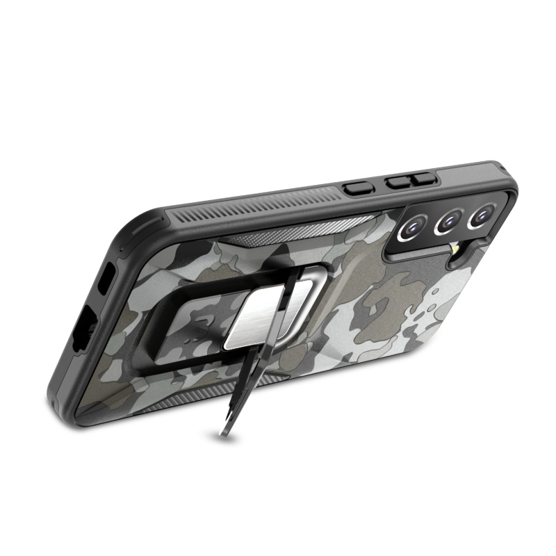 Provide your customers with the protection and ruggedness their for their Samsung Galaxy S22 Plus need to match their active lifestyles with the Black Camo Stealth Series Case from MyBat Pro. It is available in attractive packaging that makes it stand out on the shelf and shows off the product beautifully, making it an ideal addition to your inventory. Designed to protect your customer's Galaxy S22 Plus from accidental scratches, bumps, and drops, the Stealth offers 2X more durability than standard cases as its military-grade durable polycarbonate outer shell and inner padded TPU shell set a new standard in phone safety. Using the stylish and discrete ring holder, users can ward off accidental drops or use it as a kickstand for hands-free media viewing on the go. A metal plate built into the case allows for quick and easy attachment to any magnetic mount, ensuring the case is versatile enough for any journey. The Stealth Military Grade Galaxy S22 Plus Cases are also lined with anti-microbial fabric to keep customers safe from hidden threats such as bacteria and germs. Features: Military-Grade Drop Protection Shock Protection Raised Bezel Edges Non-Slip Bumper Grip Easy Access: Ports & Buttons Anti-Microbial Lining Ring Holder Horizontal Kickstand Built-In Metal Plate Compatible with Magnetic Mounts Lifetime Warranty *** Note: Not Wireless Charging Compatible ***