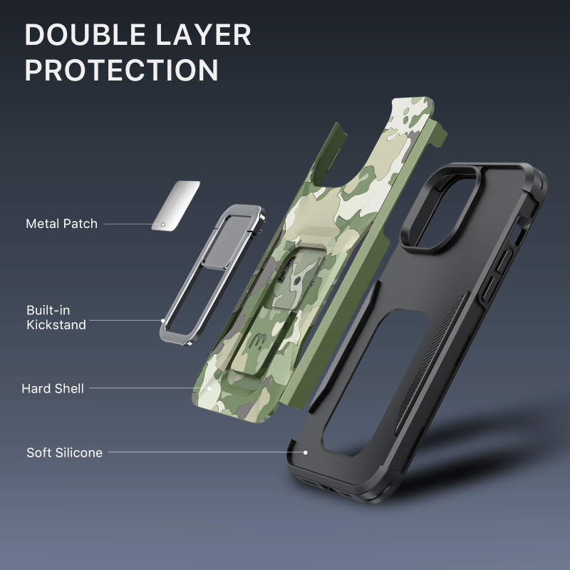 MyBat Pro Stealth Series (with Stand) for Apple iPhone 14 Pro Max (6.7) - Army Green Camo / Black