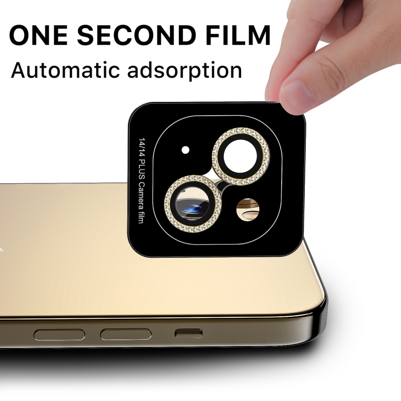 Protect your customers' iPhone 14 (6.1) / 14 Plus (6.7) camera with the GlamCam Tempered Glass Camera Lens Protector, a unique fusion of style and protection. Each protector features a bedazzled ring that adds a touch of glamor to their photography endeavors. Designed for a flush fit, it ensures unhampered functionality and high-definition clarity for stunning shots. Crafted with a strength 5X greater than standard glass, the GlamCam Protector safeguards lenses from scratches, scuffs, and smudges while maintaining peak camera performance. The premium oleophobic coating further enhances lens clarity while repelling oil, dirt, and fingerprints. Offer your customers an elegant and secure camera lens solution that truly sparkles! Backed by MyBat Pro’s limited one-year warranty, the GlamCam Tempered Glass Camera Lens Protector ensures the quality and performance your customers deserve. Stand behind a product that allows your customers to keep their photos looking as glam as ever. Features: (2) Rhinestone Lens Protectors Full Coverage High-Definition Clarity Multi-Layered Tempered Glass 5X Stronger Than Standard Glass Scratch Resistant Impact & Shatter Protection Oleophobic Anti-Fingerprint & Oil Coating Aluminum Alloy Frame Incredibly Thin: 0.33mm Precise Fit Easy Application Lifetime Warranty