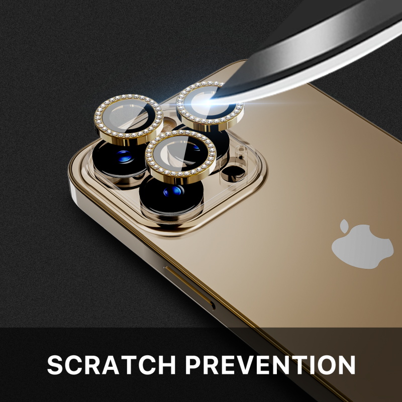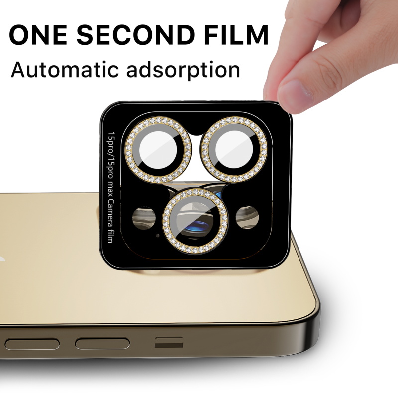 Protect your customers' iPhone 15 Pro Max (6.7) / 15 Pro (6.1) camera with the GlamCam Tempered Glass Camera Lens Protector, a unique fusion of style and protection. Each protector features a bedazzled ring that adds a touch of glamor to their photography endeavors. Designed for a flush fit, it ensures unhampered functionality and high-definition clarity for stunning shots. Crafted with a strength 5X greater than standard glass, the GlamCam Protector safeguards lenses from scratches, scuffs, and smudges while maintaining peak camera performance. The premium oleophobic coating further enhances lens clarity while repelling oil, dirt, and fingerprints. Offer your customers an elegant and secure camera lens solution that truly sparkles! Backed by MyBat Pro’s limited one-year warranty, the GlamCam Tempered Glass Camera Lens Protector ensures the quality and performance your customers deserve. Stand behind a product that allows your customers to keep their photos looking as glam as ever. Features: (3) Rhinestone Lens Protectors Full Coverage High-Definition Clarity Multi-Layered Tempered Glass 5X Stronger Than Standard Glass Scratch Resistant Impact & Shatter Protection Oleophobic Anti-Fingerprint & Oil Coating Aluminum Alloy Frame Incredibly Thin: 0.33mm Precise Fit Easy Application Lifetime Warranty