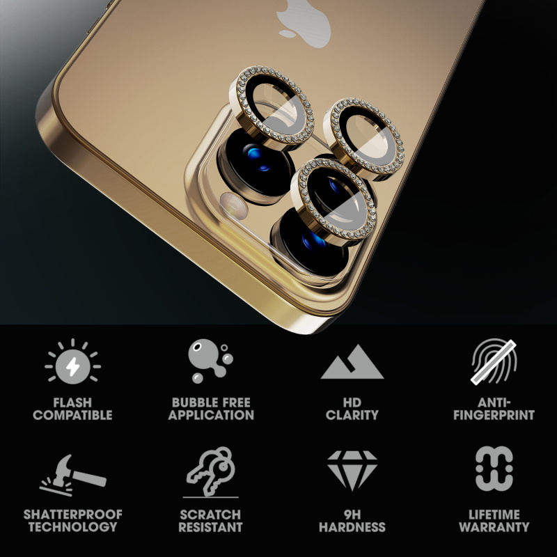 MyBat Pro Tempered Glass GlamCam Lens Protector for Apple iPhone 15 Pro Max (6.7) / 15 Pro (6.1) - Gold