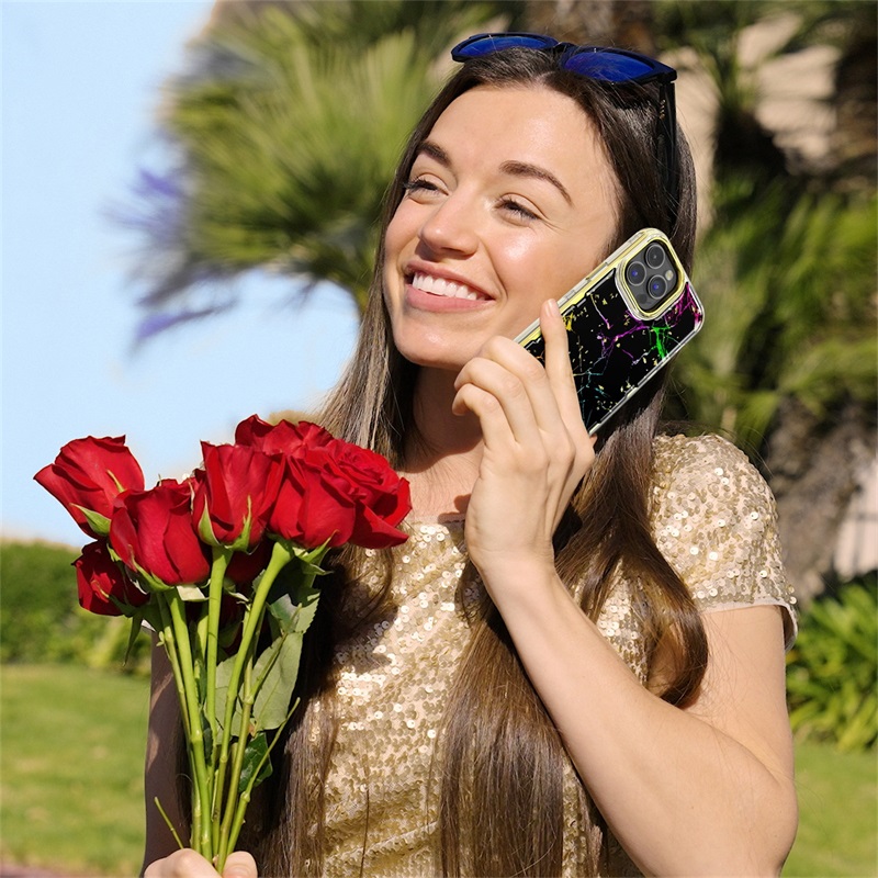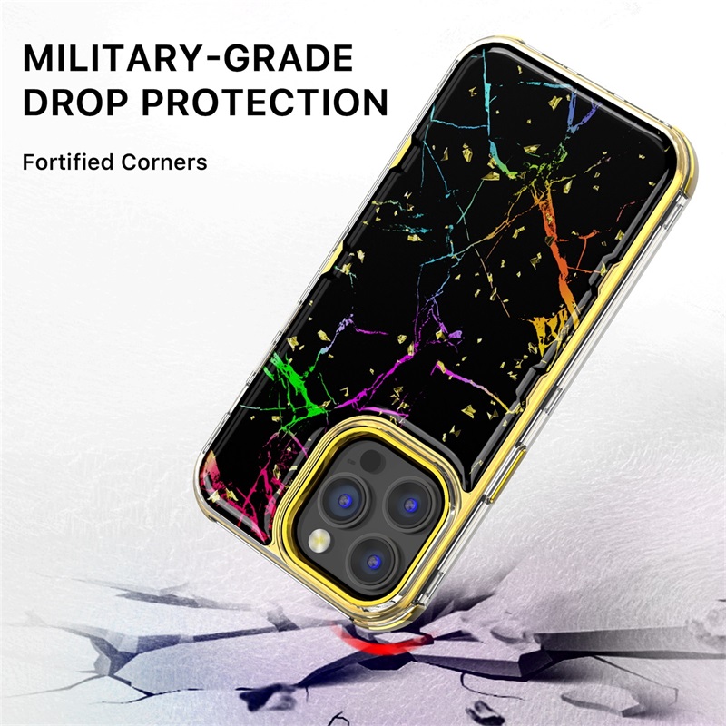 MyBat Pro TUFF Kleer Hybrid Case for Apple iPhone 14 Pro Max (6.7) - Black Marbling / Electroplating Gold