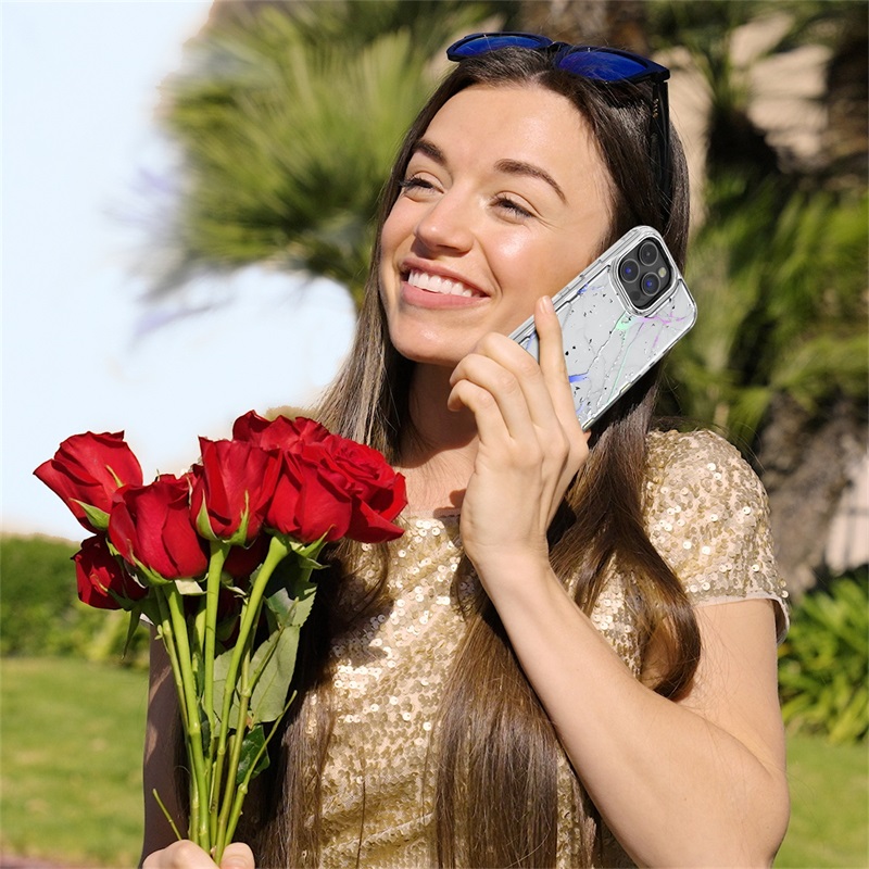 MyBat Pro TUFF Kleer Hybrid Case for Apple iPhone 14 Pro Max (6.7) - White Marbling / Electroplating Silver