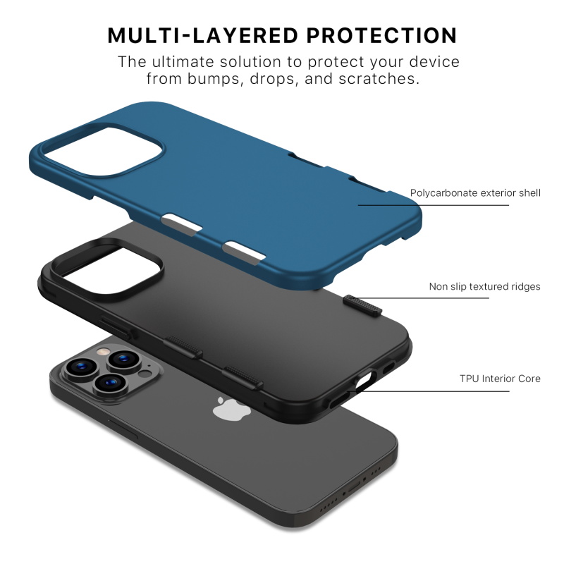 Your customers can slim down from bulky phone cases and toughen up their Apple iPhone 13 Pro with the Tuff Subs Series Case from MyBat Pro. It is available in attractive packaging that makes it stand out on the shelf and shows off the product beautifully, making it an ideal addition to your inventory. Introducing the Tuff Subs Case, a new, thinner than ever phone case that provides true ruggedness to your customer's iPhone 13 Pro! It's tougher than it looks and takes advantage of everything that makes the classic Tuff Series so popular! Dual-layered protection, a rugged ink blue polycarbonate outer shell, and a rubberized silicone inner shell will provide maximum protection from accidental drops, bumps, and scratches to your customers' iPhone 13 Pro Max. Your customers can easily access all buttons and ports with raised bezel edges and texturized ergonomic ridged edges. MyBat Pro offers an extended lifetime warranty for the Tuff Subs Series Case For iPhone 13 Pro, ensuring the best quality, performance, and customer satisfaction. Features: Dual-Layered Superior Durability Raised Bezel Edges Easy Access: Ports & Buttons Ultra-Slim, Lightweight & Minimal Design Quick Installation & Removal Lifetime Warranty