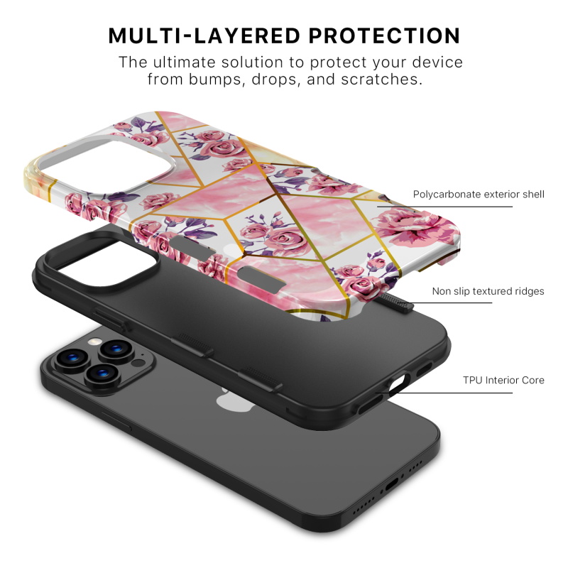 Your customers can slim down from bulky phone cases and toughen up their Apple iPhone 13 Pro Max with the Tuff Subs Series Case from MyBat Pro. It is available in attractive packaging that makes it stand out on the shelf and shows off the product beautifully, making it an ideal addition to your inventory. Introducing the Tuff Subs Case, a new, thinner than ever phone case that provides true ruggedness to your customer's iPhone 13 Pro Max! It's tougher than it looks and takes advantage of everything that makes the classic Tuff Series so popular! Dual-layered protection, a rugged marble roses style polycarbonate outer shell, and a rubberized silicone inner shell will provide maximum protection from accidental drops, bumps, and scratches to your customers' iPhone 13 Pro Max. Your customers can access all buttons and ports with ease as a result of raised bezel edges and texturized ergonomic ridged edges. MyBat Pro offers an extended lifetime warranty for the Tuff Subs Series Case For iPhone 13 Pro Max, ensuring the best quality, performance, and customer satisfaction. Features: Dual-Layered Superior Durability Raised Bezel Edges Easy Access: Ports & Buttons Ultra-Slim, Lightweight & Minimal Design Quick Installation & Removal Lifetime Warranty