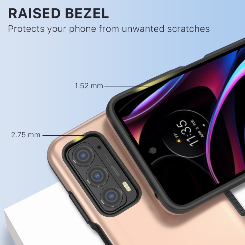 Your customers can slim down from bulky phone cases and toughen up their Motorola Edge (2021) with the Tuff Subs Series Case from MyBat Pro. It is available in attractive packaging that makes it stand out on the shelf and shows off the product beautifully, making it an ideal addition to your inventory. Introducing the Tuff Subs Case, a new, thinner than ever phone case that provides true ruggedness to your customer's Edge (2021)! It's tougher than it looks and takes advantage of everything that makes the classic Tuff Series so popular! Dual-layered protection, a rugged rose gold polycarbonate outer shell, and a rubberized silicone inner shell will provide maximum protection from accidental drops, bumps, and scratches to your customers' Edge (2021). Your customers can access all buttons and ports with ease as a result of raised bezel edges and texturized ergonomic ridged edges. MyBat Pro offers an extended lifetime warranty for the Tuff Subs Series Case For Edge (2021), ensuring the best quality, performance, and customer satisfaction. Features: Dual-Layered Superior Durability Raised Bezel Edges Easy Access: Ports & Buttons Ultra-Slim, Lightweight & Minimal Design Quick Installation & Removal Lifetime Warranty